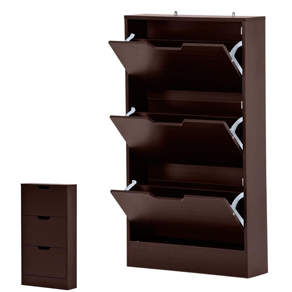 【使い勝手】おしゃれなデザインと落ち着いた色合いで、お部屋の雰囲気も良くなり、玄関、キッチン、台所、ベランダなど様々なところで利用できます。シューズラックとしてはもちろん、普通の収納ラックとしても使用できます。雑誌、鞄、衣類、ぬいぐるみ、スナック、鉢植えなどの収納も利用できます。 木目の立体感までを再現した美しい木目模様天板】なめらかな手触り天板は高級感といい肌触りが兼ね備える上、水や汚れに強く、耐久性も優れて、お手入れも簡単です。汚れた時もサッと簡単に拭けます。