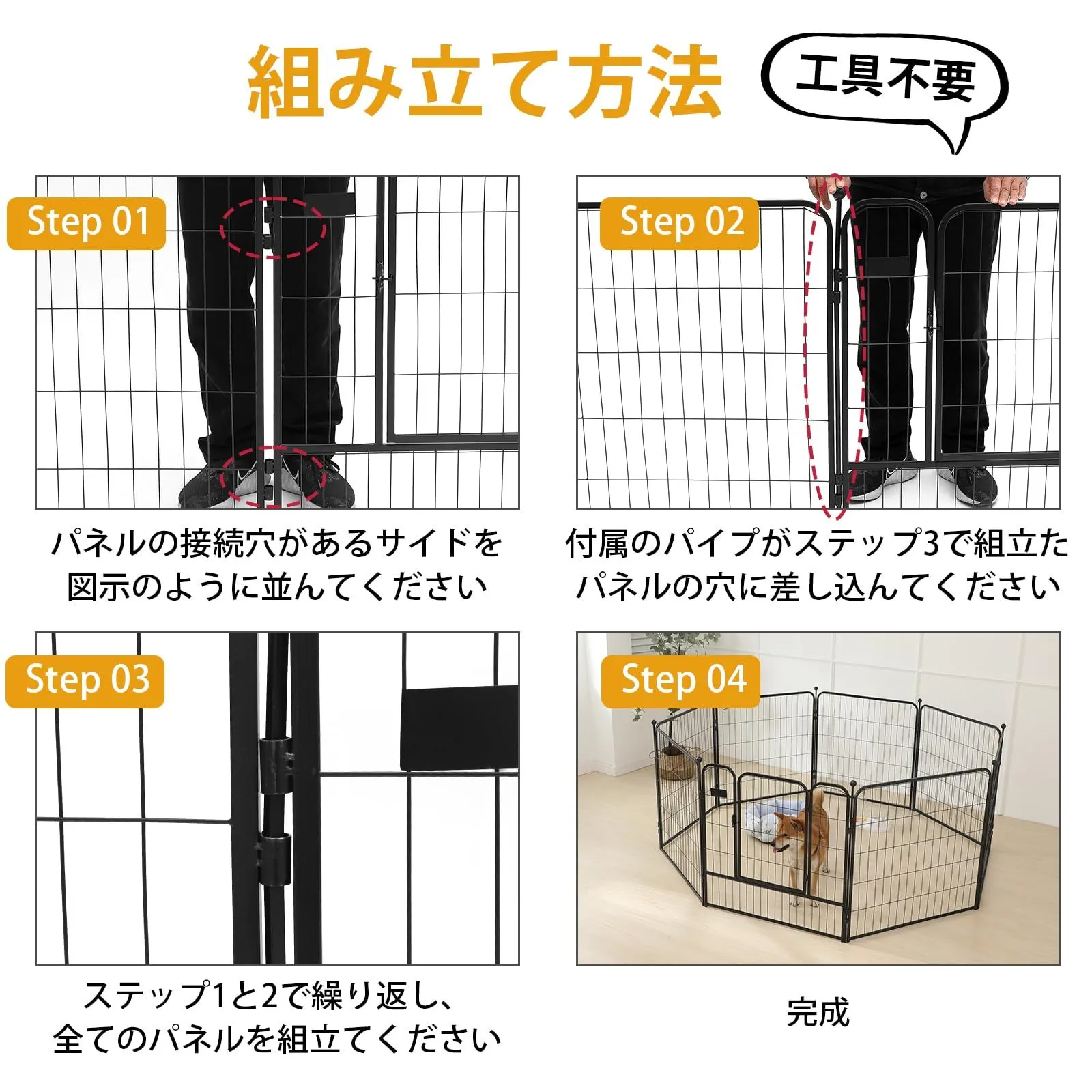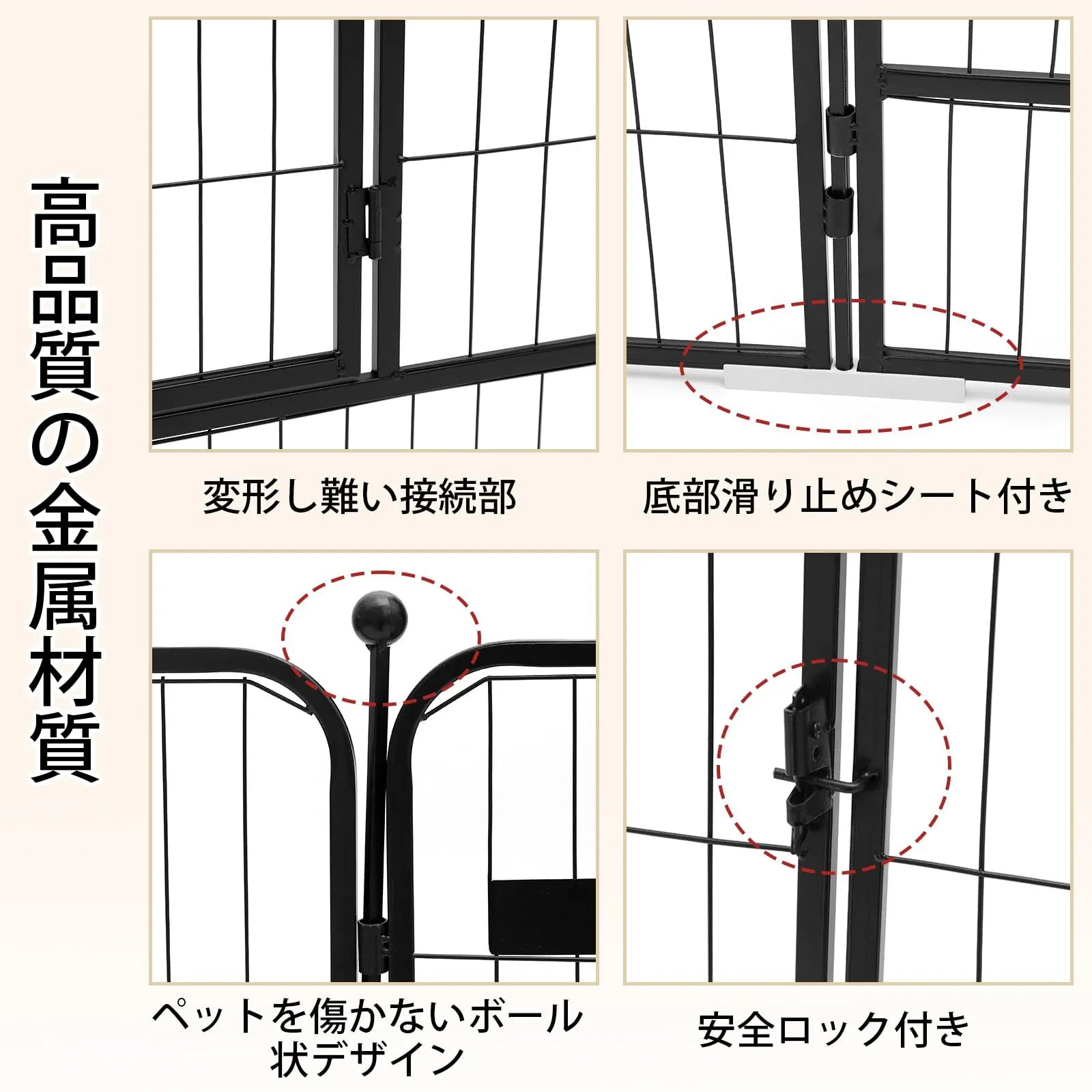 PETTOM 犬 サークル ペットフェンス ペットケージ 犬 ゲージ 中大型犬用 スチール製 コンパクト 8枚組 高さ80cm 高さ100cm 室内外兼用 折り畳み式 組立簡単 軽量 持ち運び便利 (高さ80cm-八枚)