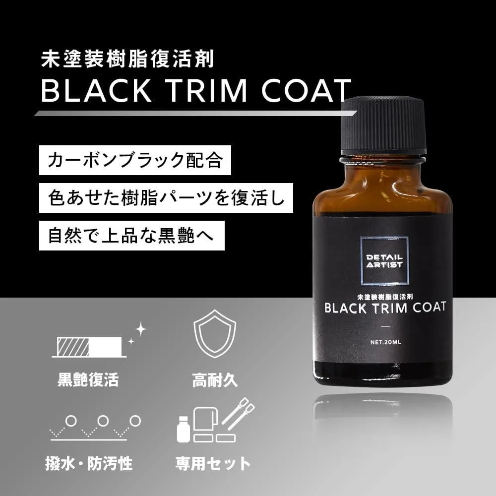 【DETAILARTIST】BLACK TRIM COAT 未塗装樹脂復活剤『色あせた樹脂パーツが完全復活』 カーボンブラック配合 艶 撥水 高耐久 6ヵ月 20ml 専用セット 洗車 ディテールアーティスト