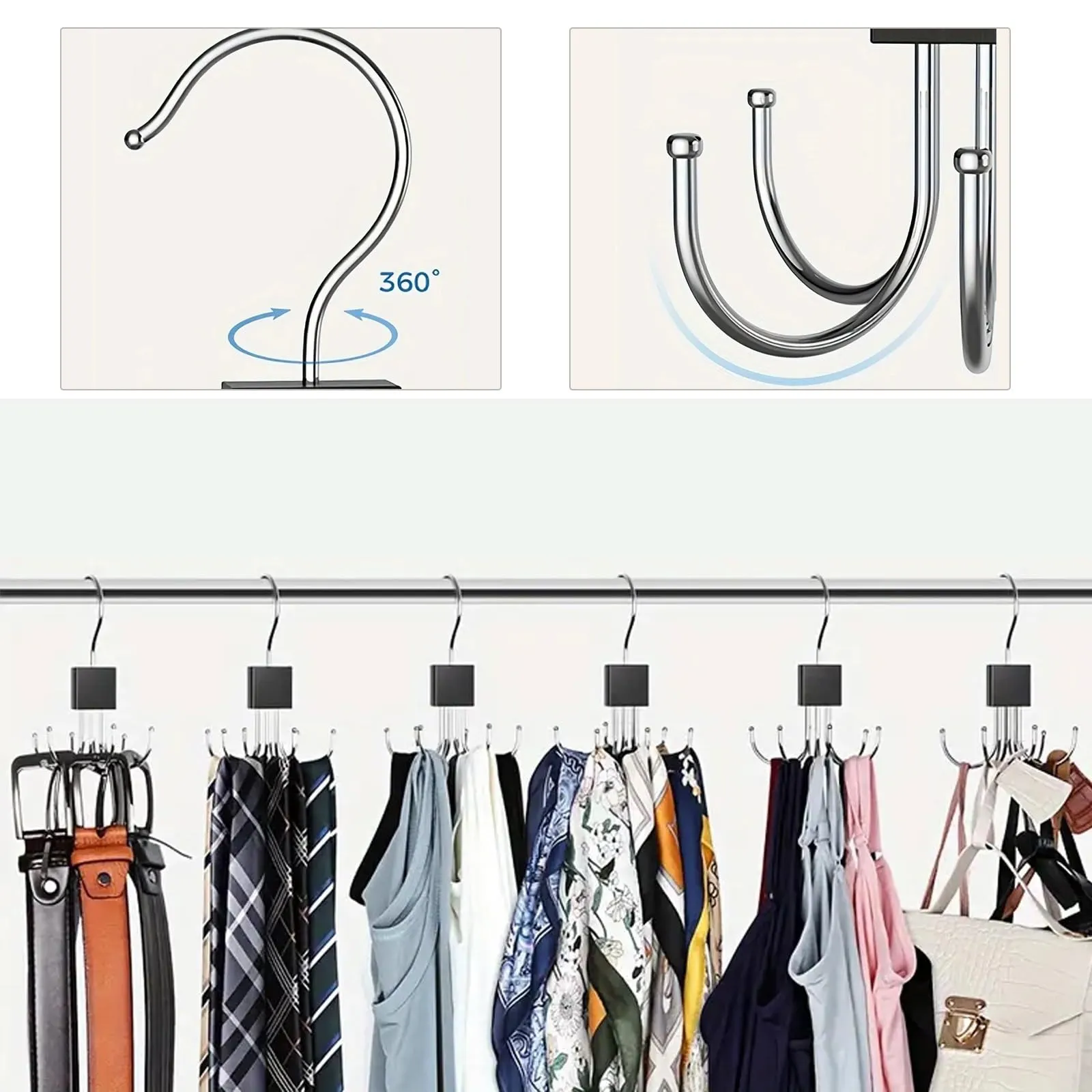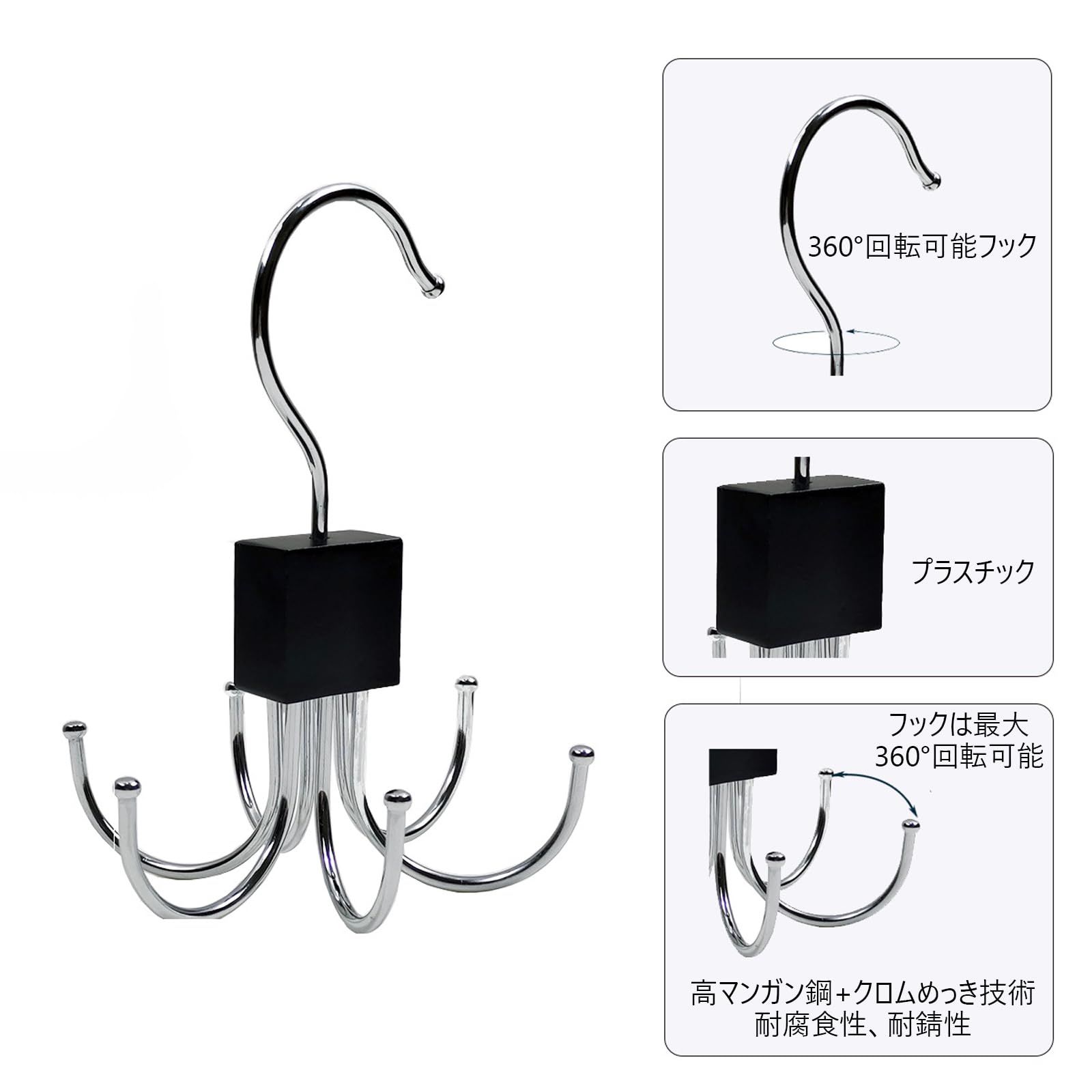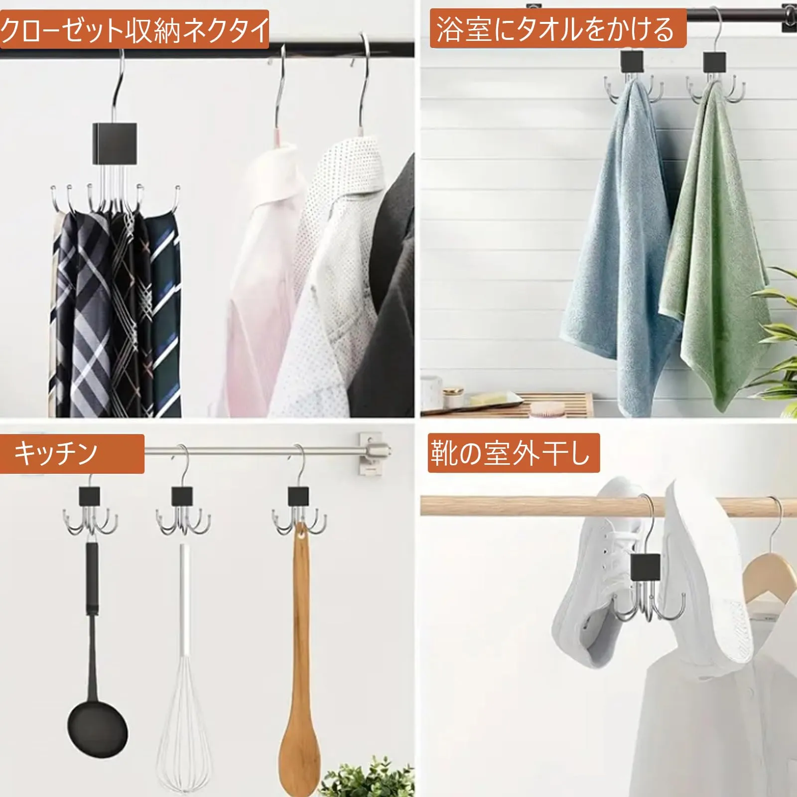 新品 FineGood 6爪回転フック 1 個セット ベルト・ネクタイ・スカーフ・帽子小物ハンガー 軽量便利 頑丈素材 6 爪 360 度回転フック 折りたたみ式 省スペースコンパクト 多機能収納 クローゼット整理必備
