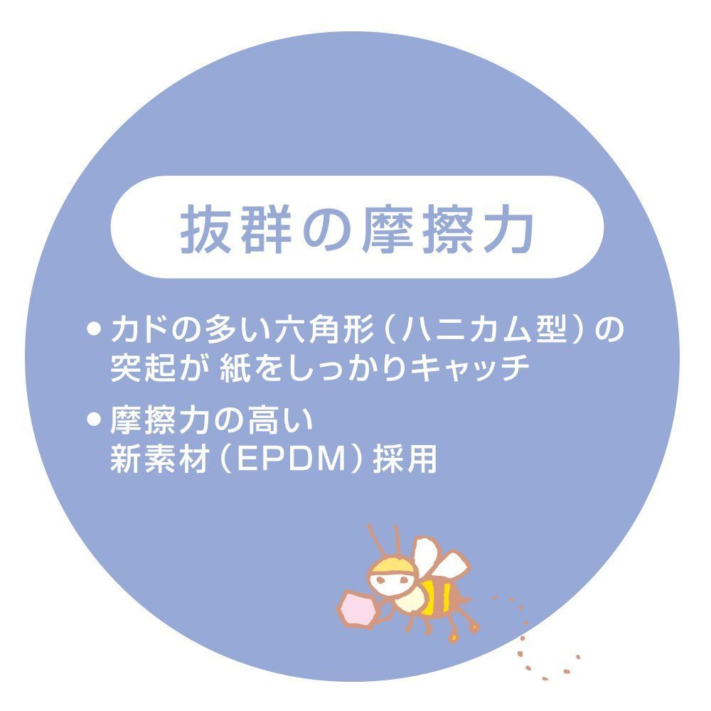 ●ムレを防ぐソフトな六角形の突起が紙をしっかりキャッチ。