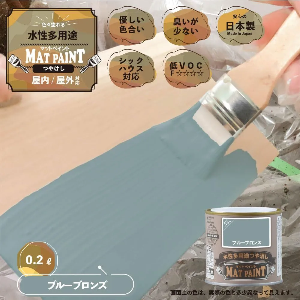 【人気商品】多用途 つやけし マットペイント 水性 ブルーブロンズ 塗料 0.2L ペンキ 日本製 カンペハピオ 00347652431002