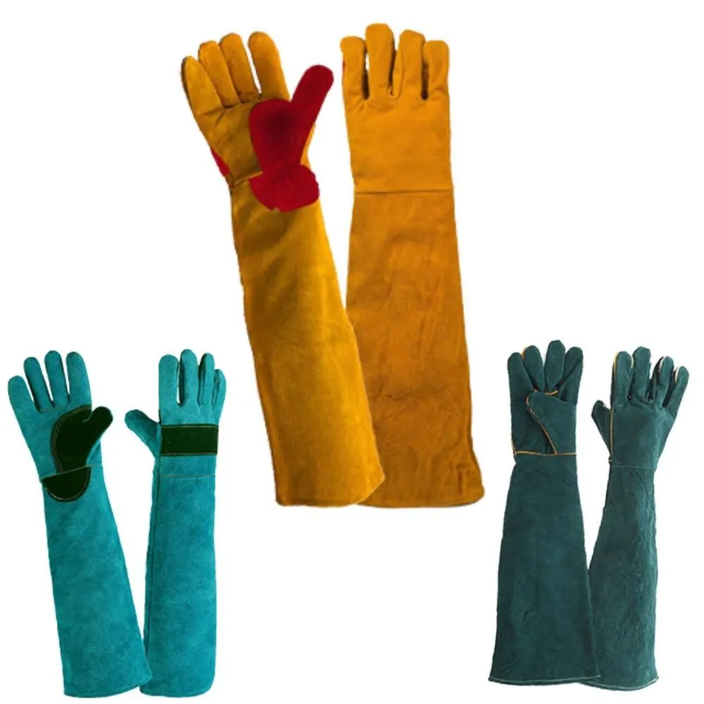 ペットグローブ 噛みつき防止 犬 猫 ロング 60cm 指先 ペット 手袋 噛みつき (エメラルドグリーン)