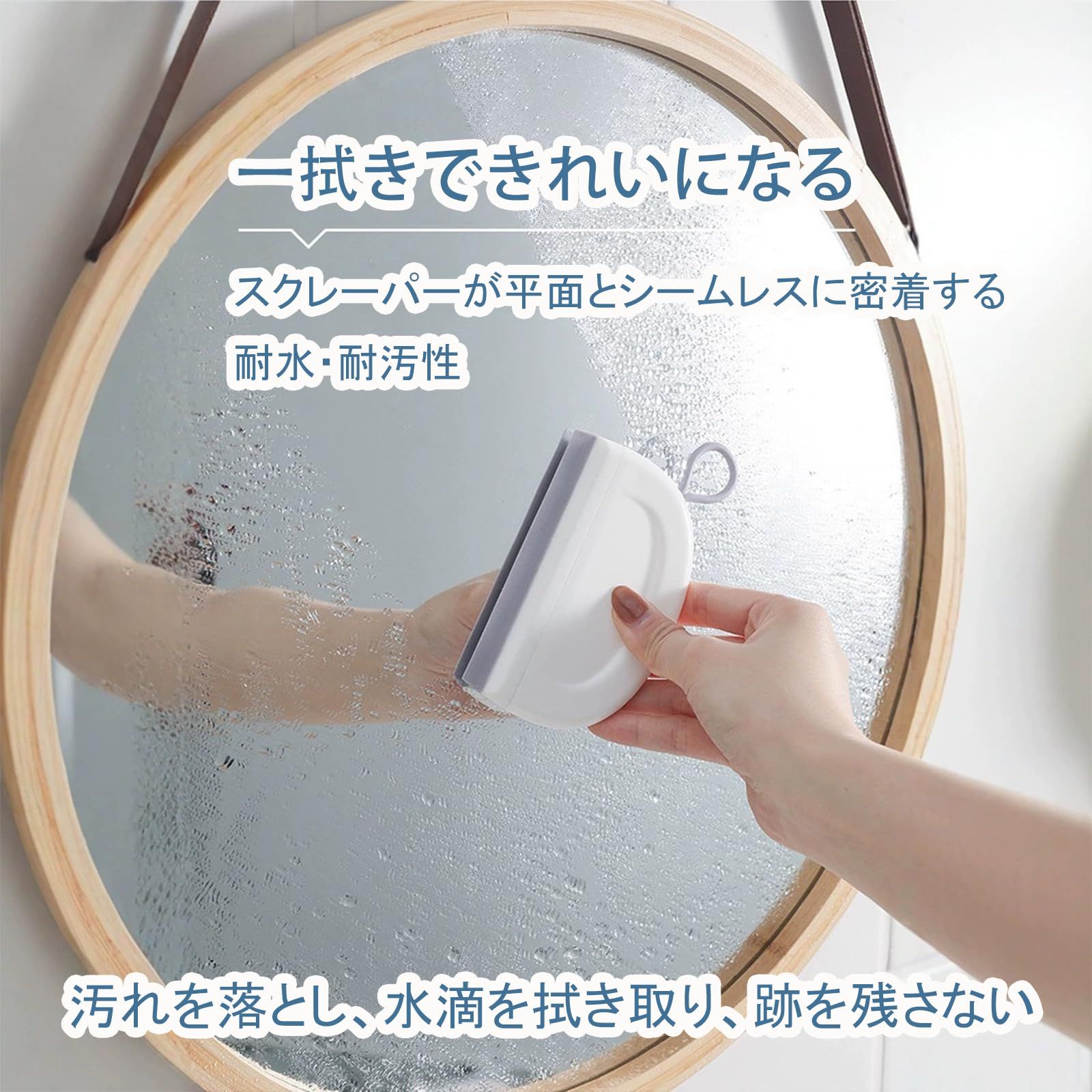 【幅広い活用シーン】 水切りワイパーはシャワードアや鏡、キッチンシンクなど、多様な平らな面で水滴や汚れを簡単に除去します。スクイージー機能で多機能に活躍し、この1本で家中の掃除が完了。水切りワイパーとして、あらゆる場所の清潔さを保つのに最適です。