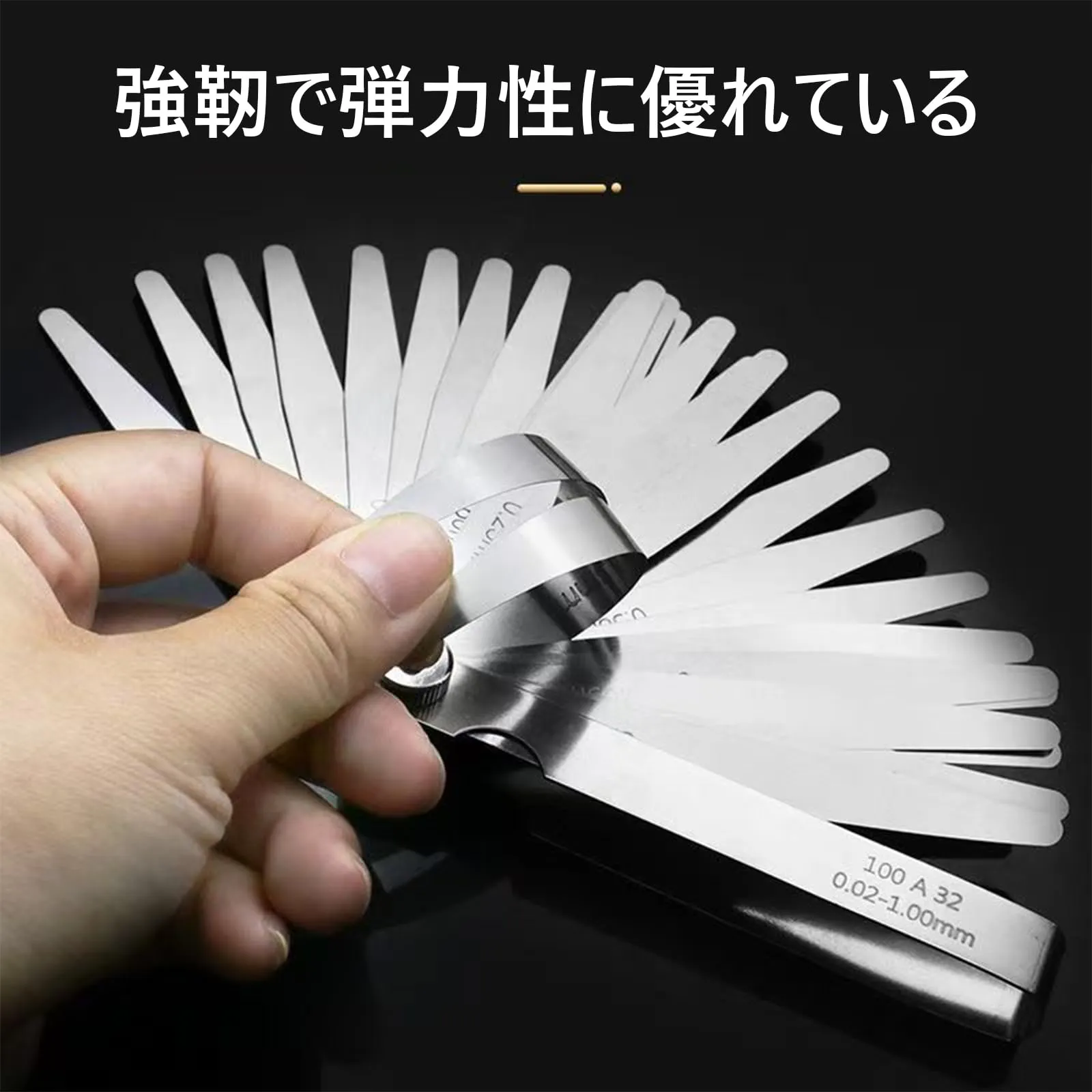 新品 FineGood シックネスゲージ 32 枚組 ステンレス製 0.02mm~1mm 高精度隙間測定具 バイク・エンジン検査対応 収納袋付き