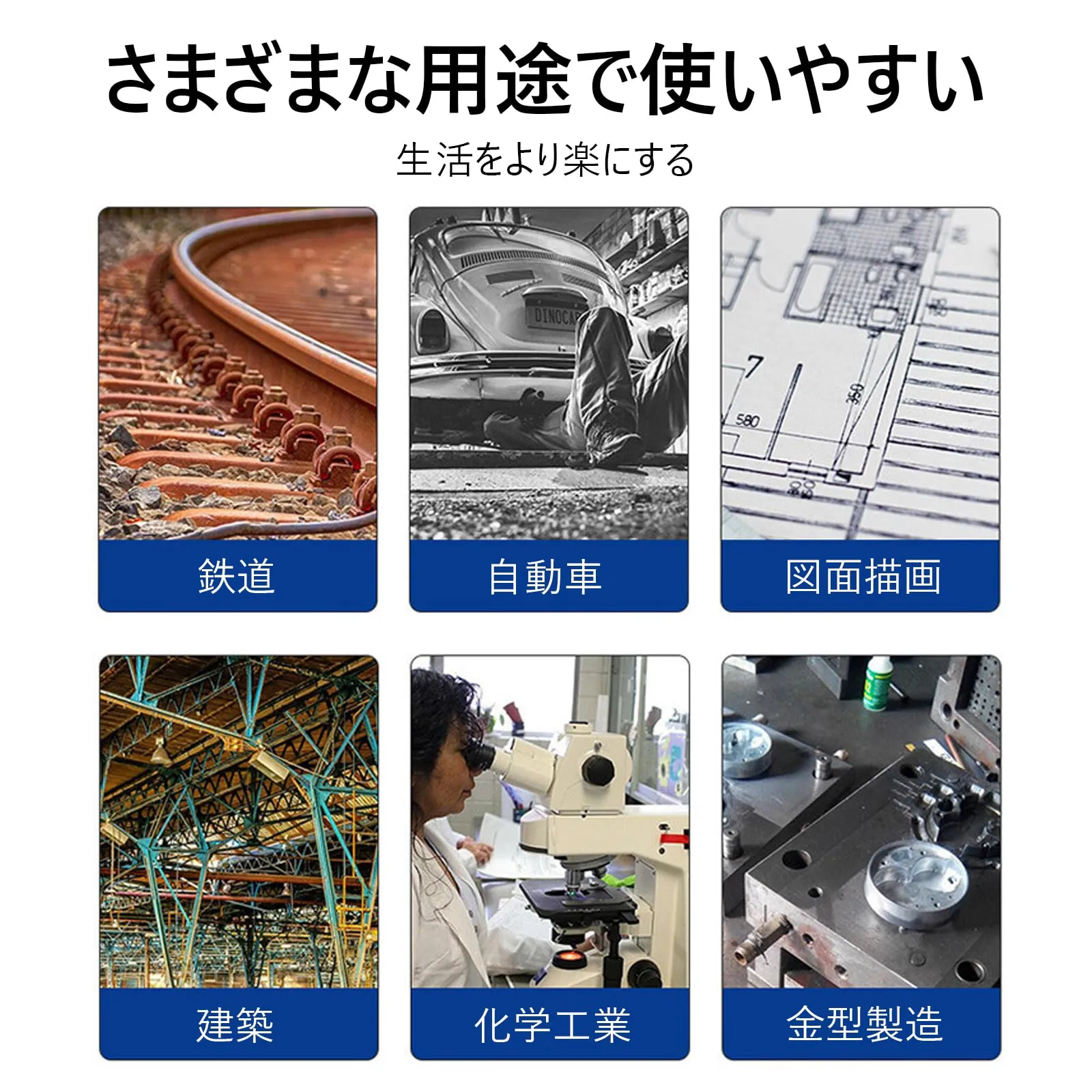 【高品質ステンレス製】耐久性と耐腐食性に優れ、錆びにくく変形しにくい特性を持ち、過酷な作業環境でも長期間測定精度を維持。防錆オイルコーティング処理が施されており、清掃・メンテナンスも簡単に行えます。