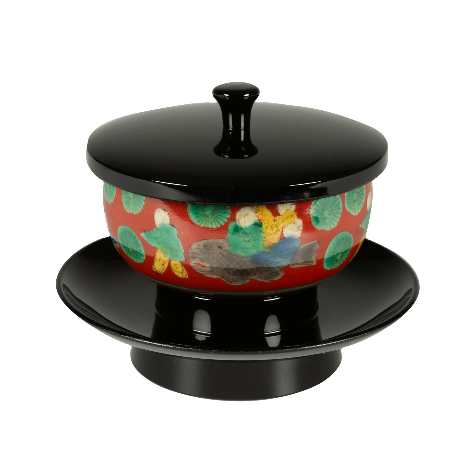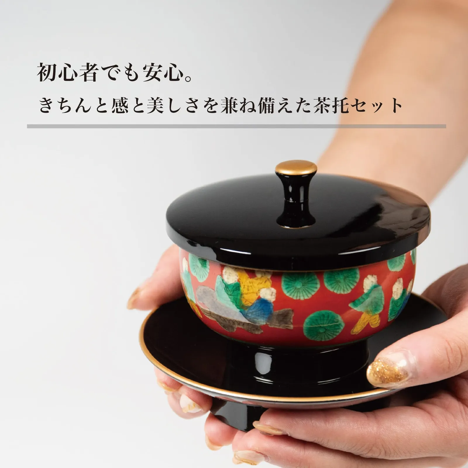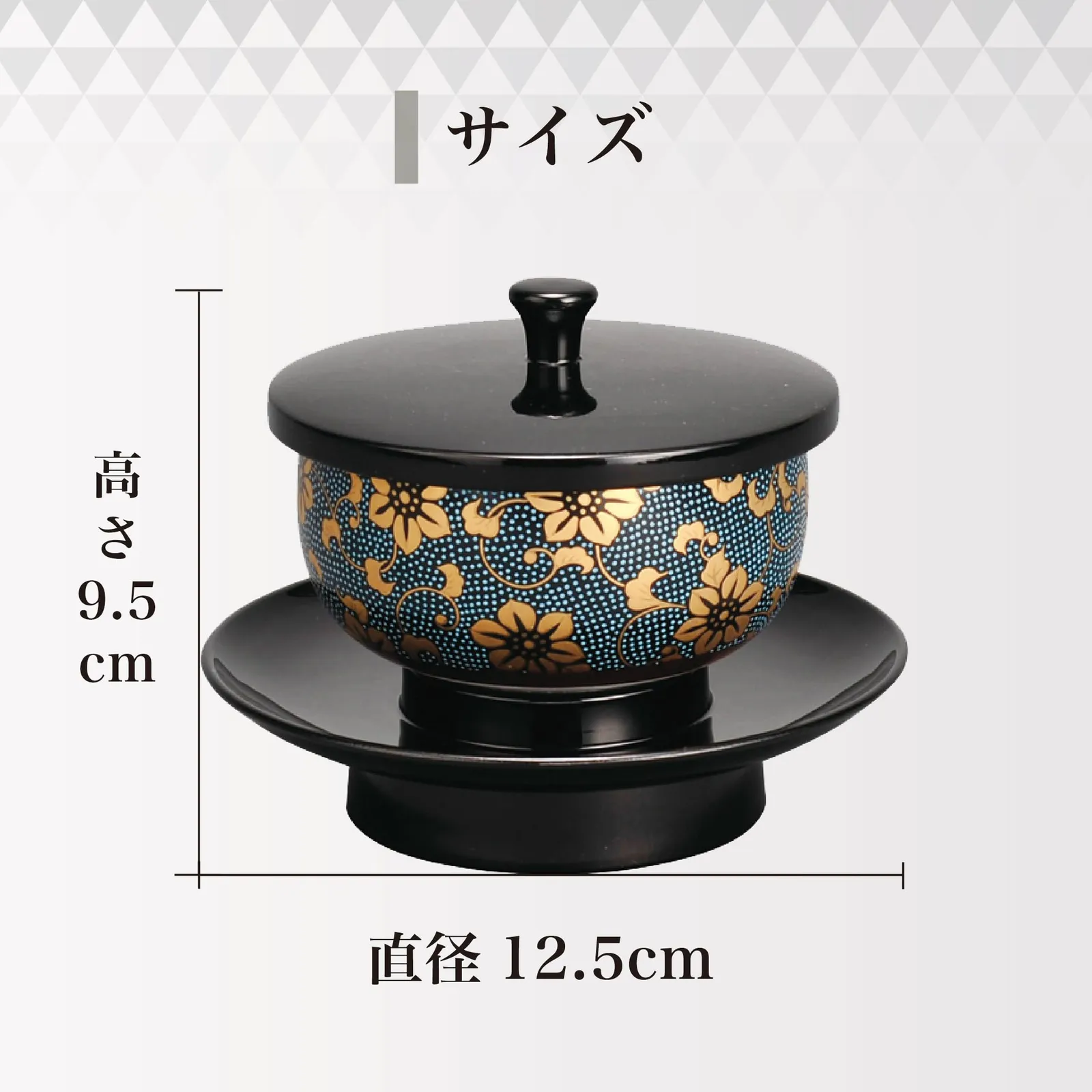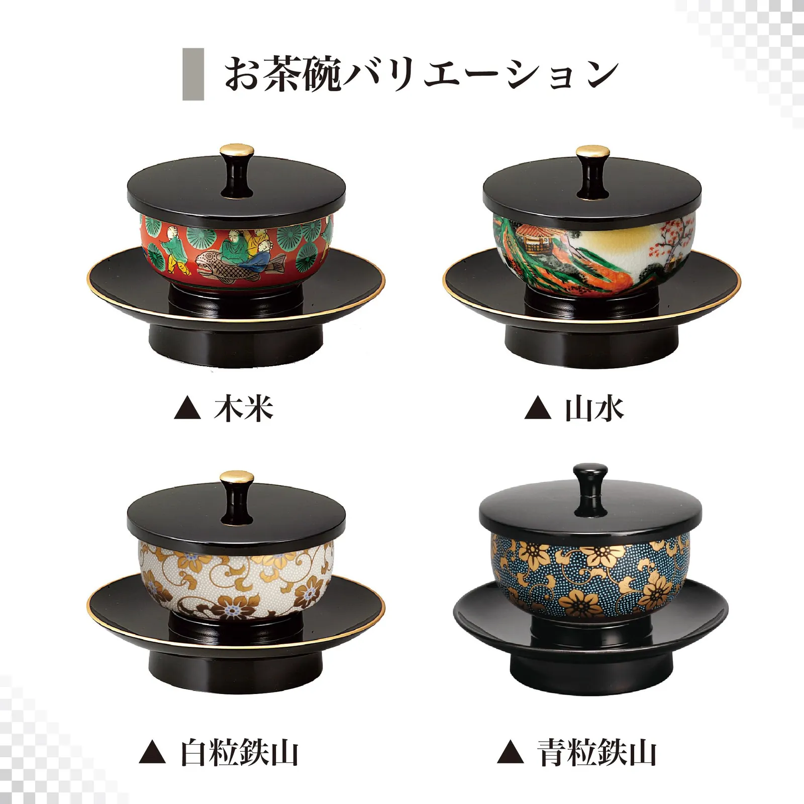 新着商品 サンメニー 本格 九谷焼 茶碗 付 茶台 茶托 山中漆器 日本製 お手軽 仏具 お盆 法事 に 定番 仏具 おちゃわん シンプル 供養 仏具 現代仏壇 お仏壇 仏具小物 4.2寸 黒 木米 毎日のお供え お参りに 手元供養 ペット 供養 小さな スペ