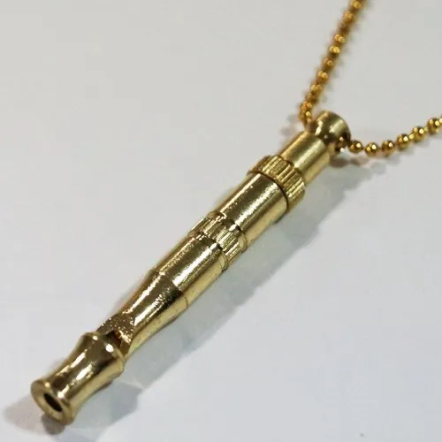 合図を笛で伝えるおしゃれなしつけアイテム。ネックレスチェーン付き。音の高さが調整可能。通常の笛のように「ピー」と音が出る笛ではありません。吹き方ごとの命令を愛犬に覚えさせてから使うものです。愛犬との良い関係をつくっていくのにお役立て下さい。[対象:犬]