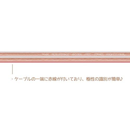 ケーブルの一端に赤線が付いており、極性の識別が簡単。