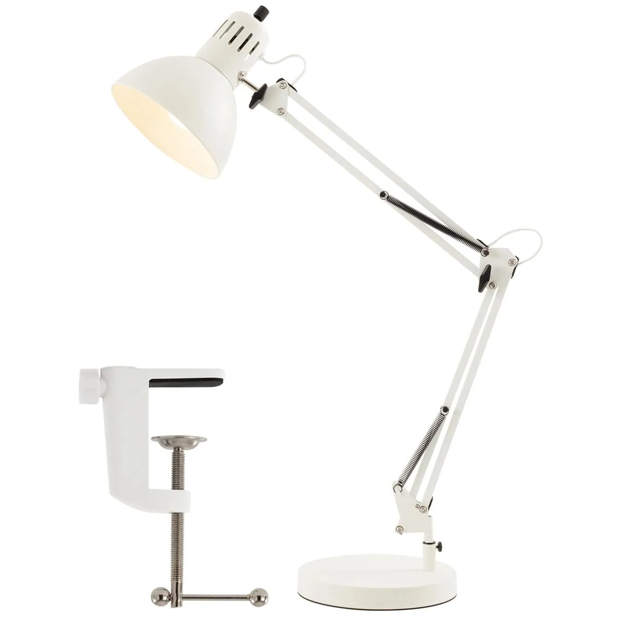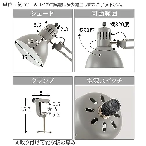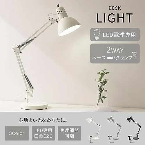 ぼん家具 デスクライト スタンド クランプ式 ベース 2WAY 卓上ライト LED E26 アームライト シェード 角度調整 読書ライト ホワイト 国内発送