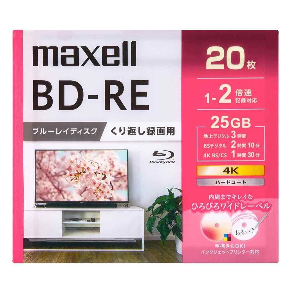 新品 録画用ブルーレイディスク BD-RE ひろびろワイドレーベルディスク(1~2倍速記録対応) プラケース 1パック(20枚入) マクセル BEV25WPG.20S
