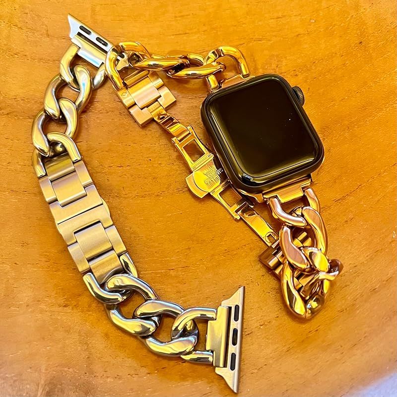 【新品】 Royce&Roland Apple watch チェーンバンド バタフライバックル おしゃれ アップルウォッチ 時計 バンド (ステンレス/シルバー) レディース メンズ ギフト プレゼント (40mm 41mm 42mm, ゴールド) 0