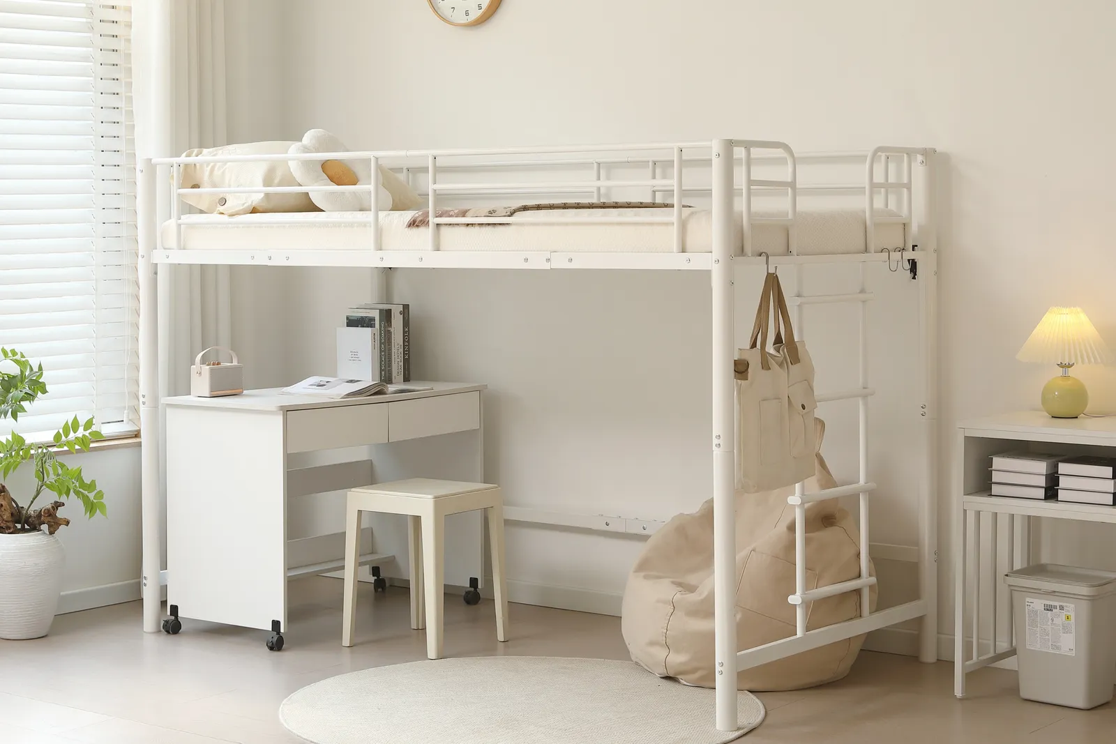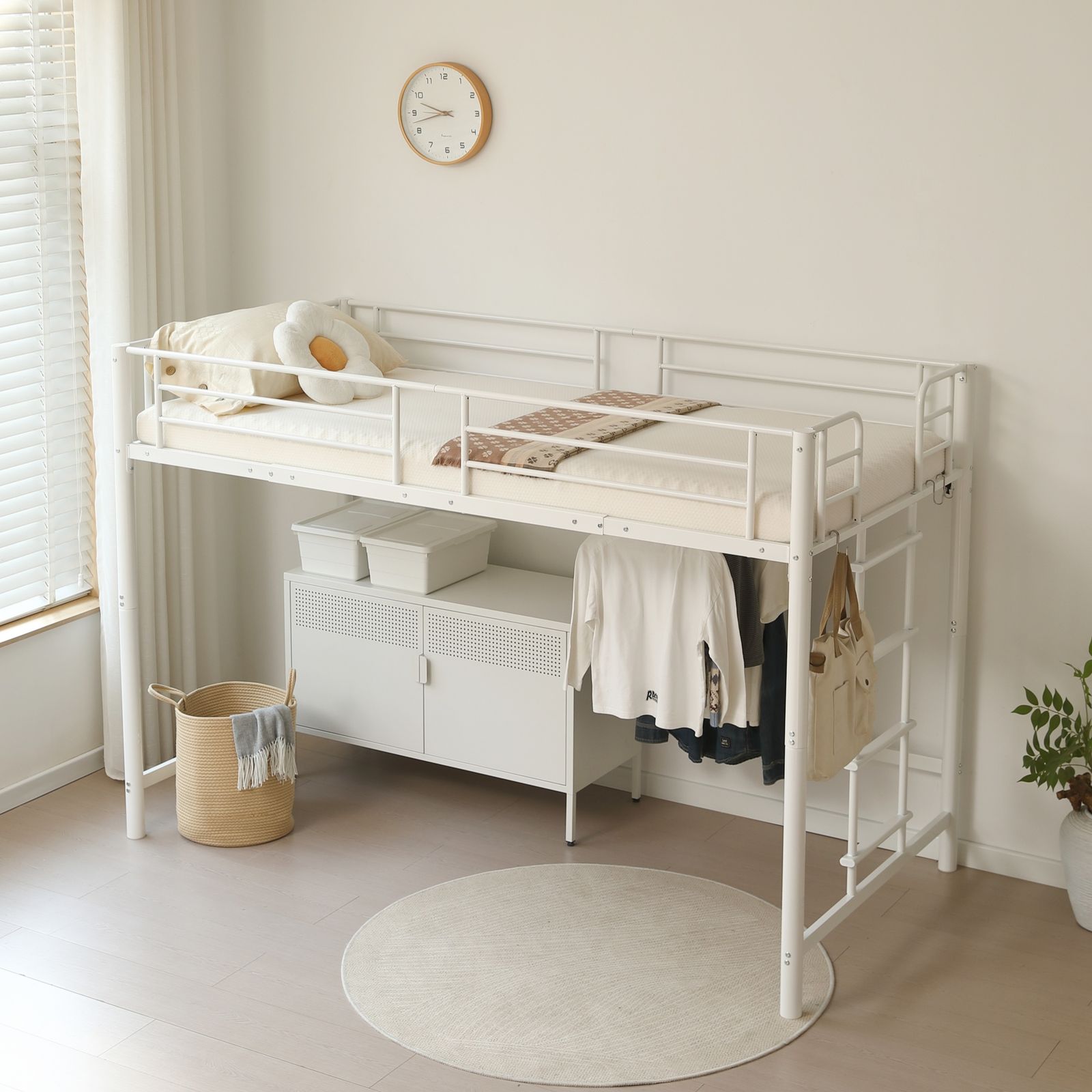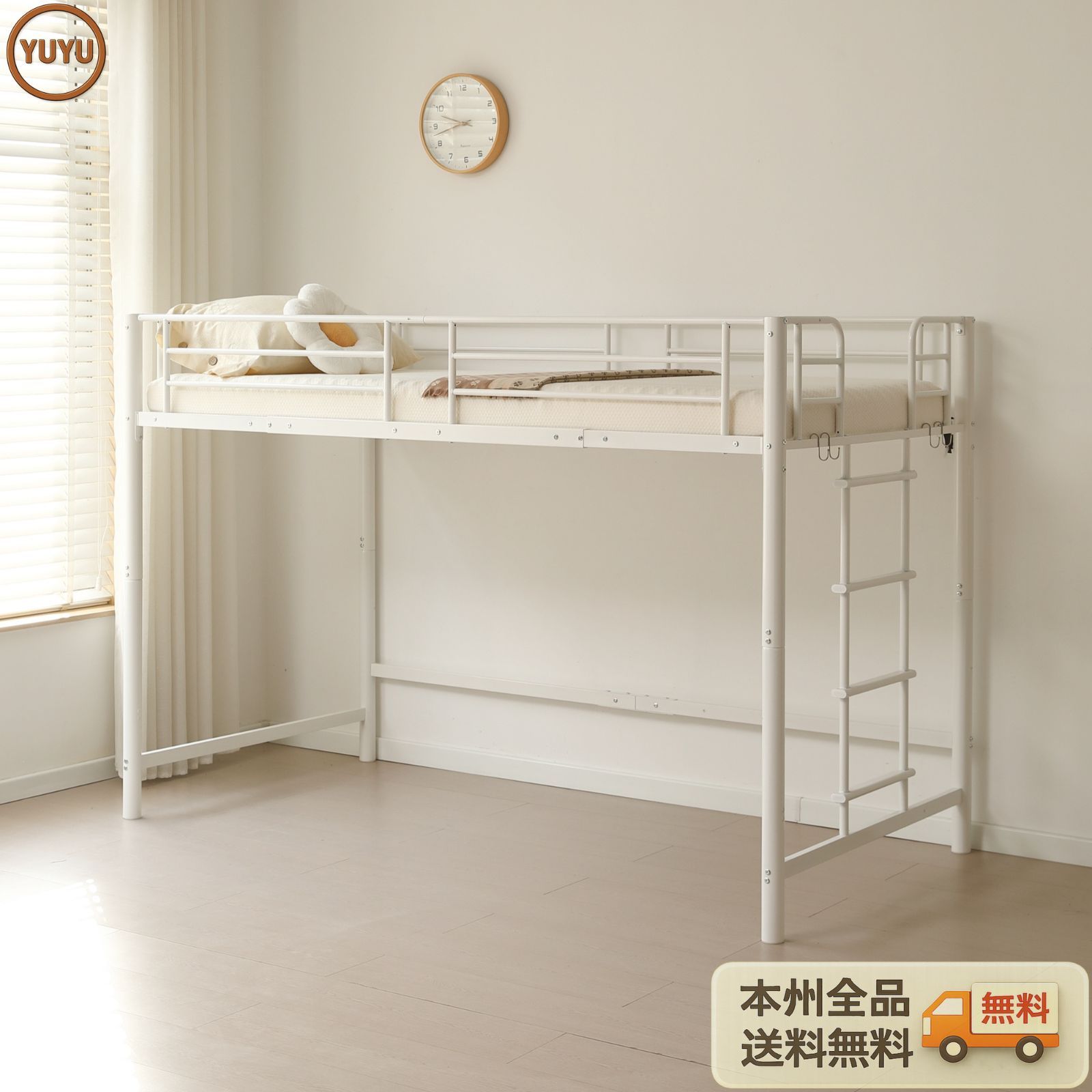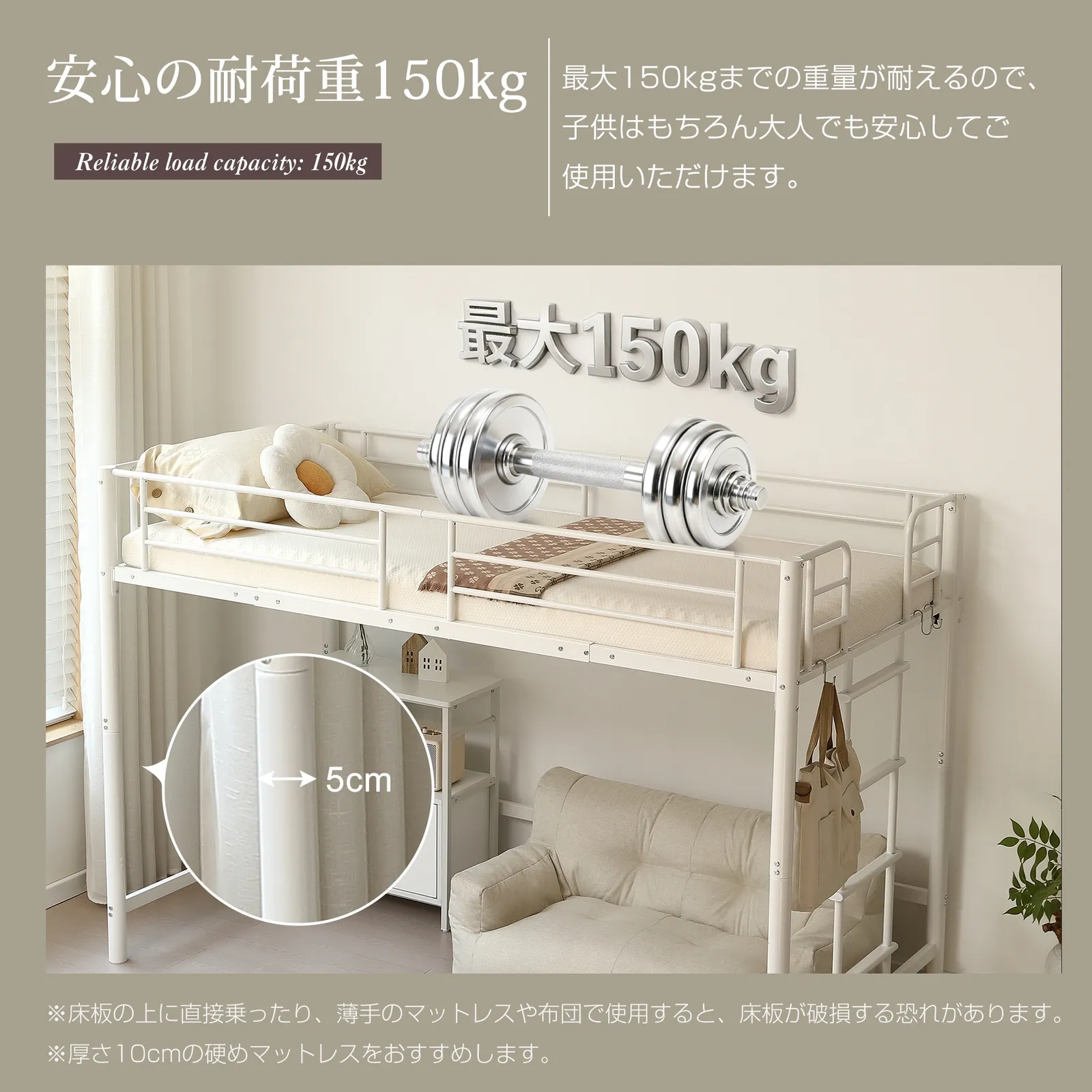 新入荷|高さ140cmロフトベッド パイプベッド シングル 耐荷重150kg システムベッド ロータイプ ミドルタイプ 収納 大人 一人暮らし スチール ホワイト