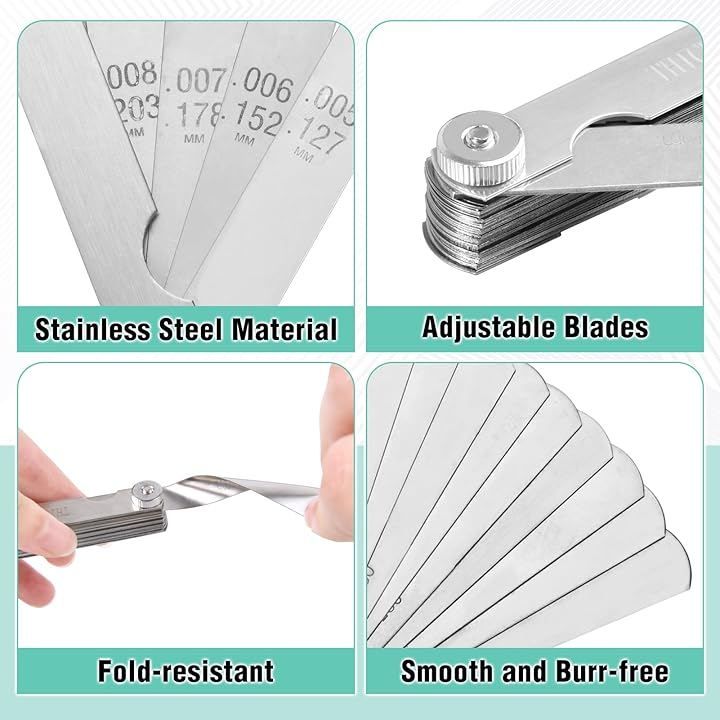 エンジニア、メカニック、技術者、デザイナーから信頼されるこの隙間ゲージは、自動車作業、機械修理、ワークショップでの実用的な測定ツールです。