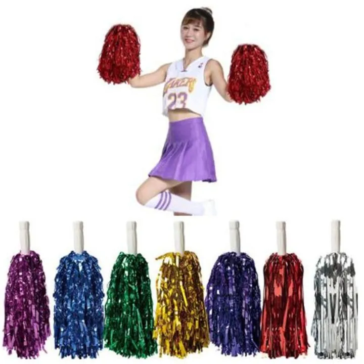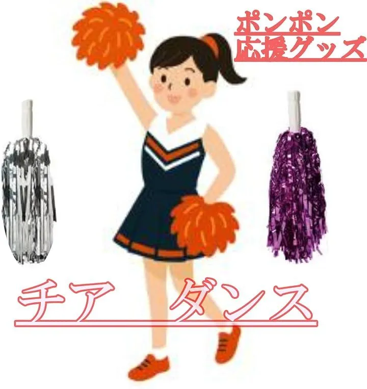 チア リーディング ポンポン 持ち手 付 7色14個 セット