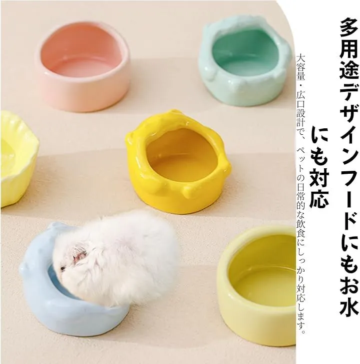 lulubelle 餌入れ 水飲み 2個セット 置き型 陶器 水入れ えさ入れ 小鳥 フードボウル フードフィーダー 小動物 (イエロー+ホワイト, 6.3cmx4.2cm)
