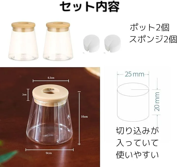 「仕様」「フォルム」フラスコ型 「セット内容」ポット2個、スポンジ 各2