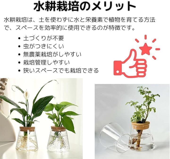 「栽培方法」水のみでの栽培、ハイドロボールなどを利用しての栽培どちらにもお使いいただけます。