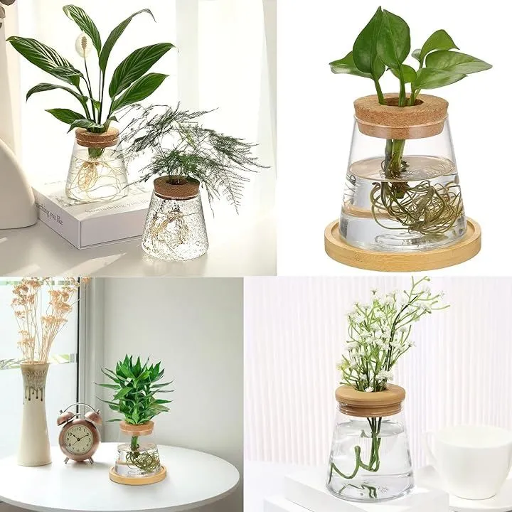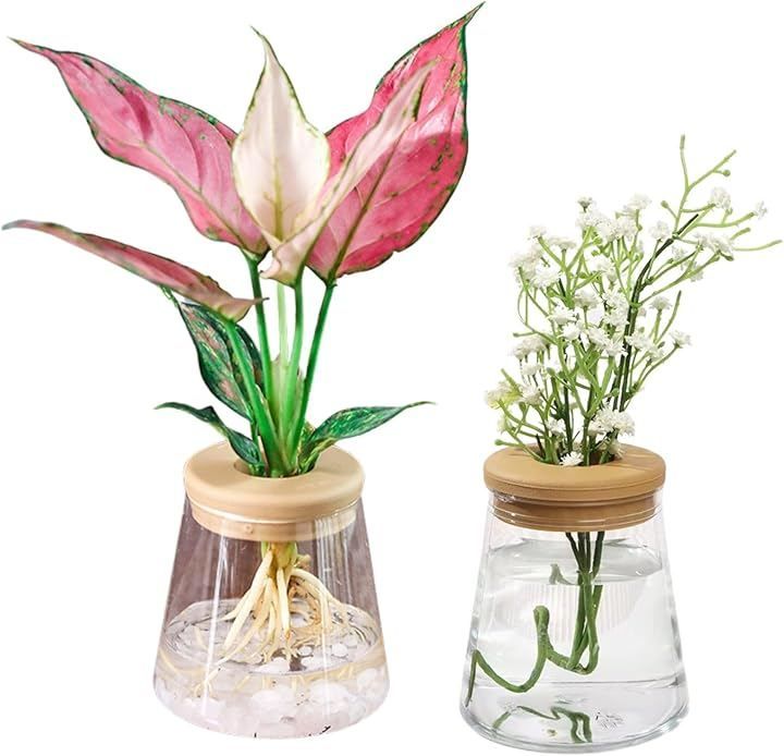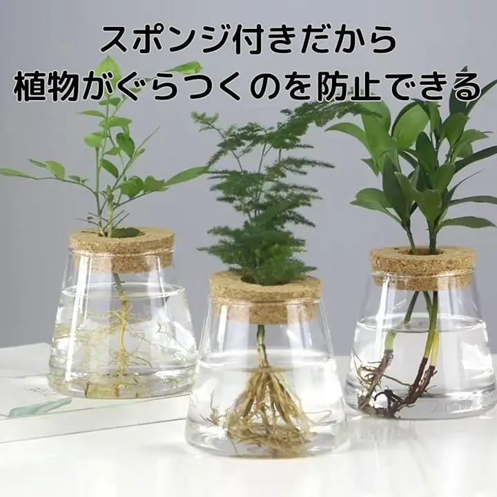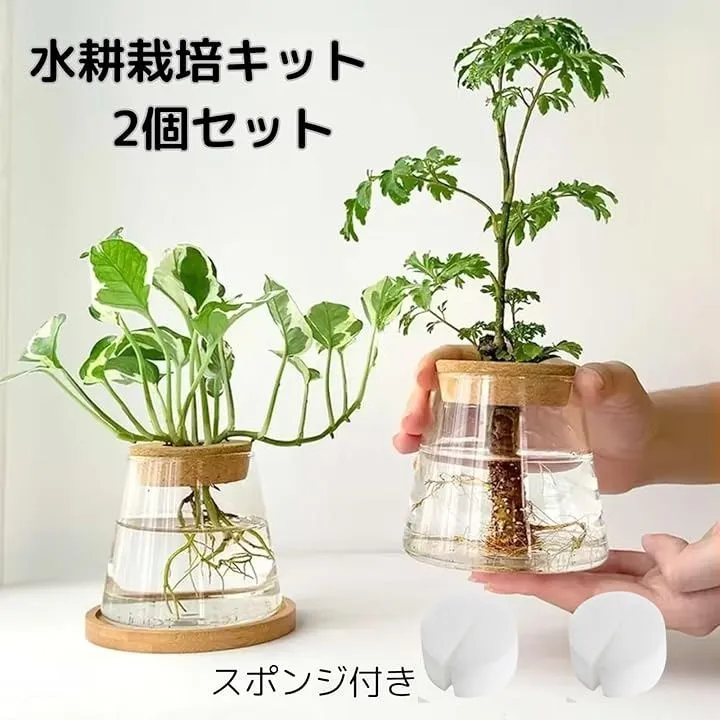 geneX ハイドロカルチャー 水耕栽培 観葉植物 育成キット 透明 プラスチック ポット フラスコ型 2セット (透明, フリー)