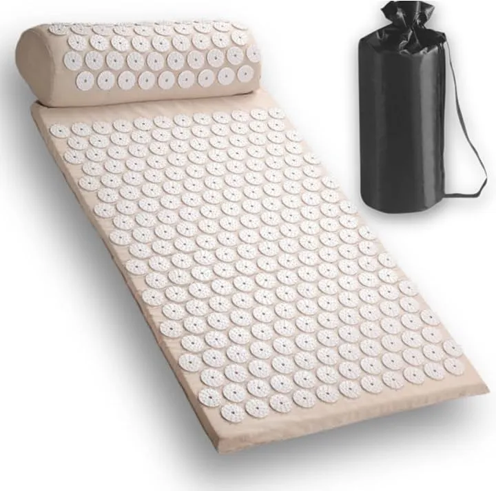 EVOX スパイクマット クッション 枕セット 収納ケース付 洗える綿カバー リフレッシュマット 背中 首 腰 枕付き 指圧 セルフケア アキュプレッシャー (クリームベージュ)