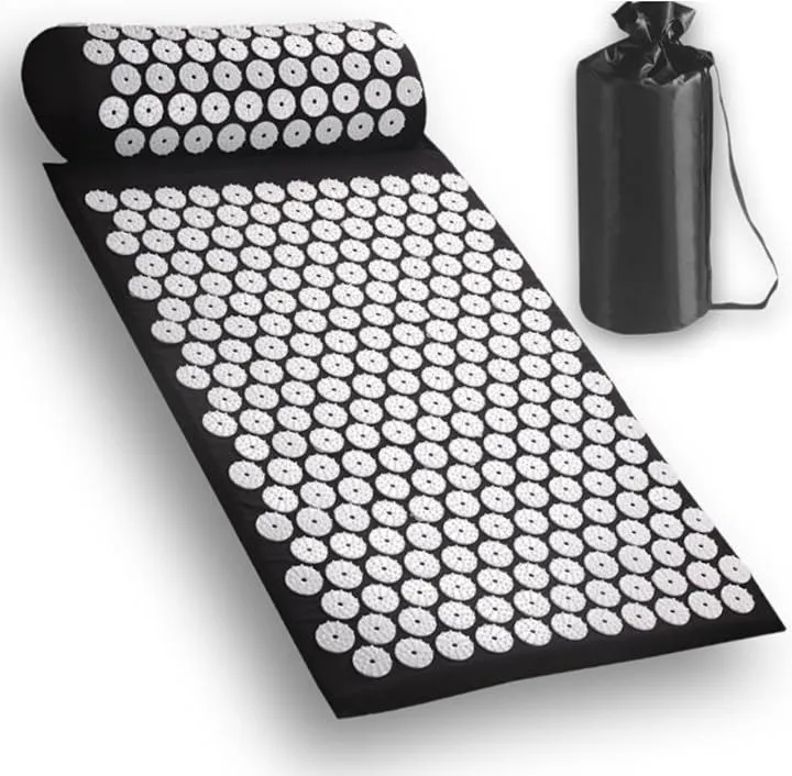 EVOX スパイクマット クッション 枕セット 収納ケース付 洗える綿カバー リフレッシュマット 背中 首 腰 枕付き 指圧 セルフケア アキュプレッシャー (ブラック)