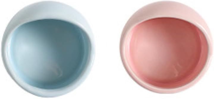 lulubelle 餌入れ 水飲み 2個セット 置き型 陶器 水入れ えさ入れ 小鳥 フードボウル フードフィーダー 小動物 (ピンク+ブルー, 6.3cmx4.2cm)