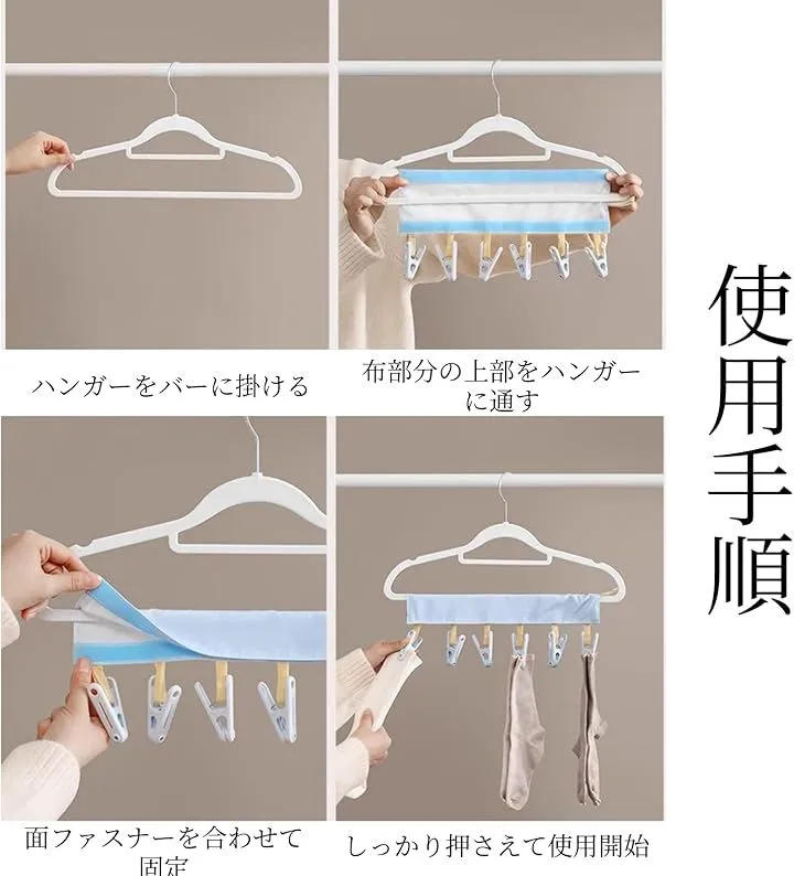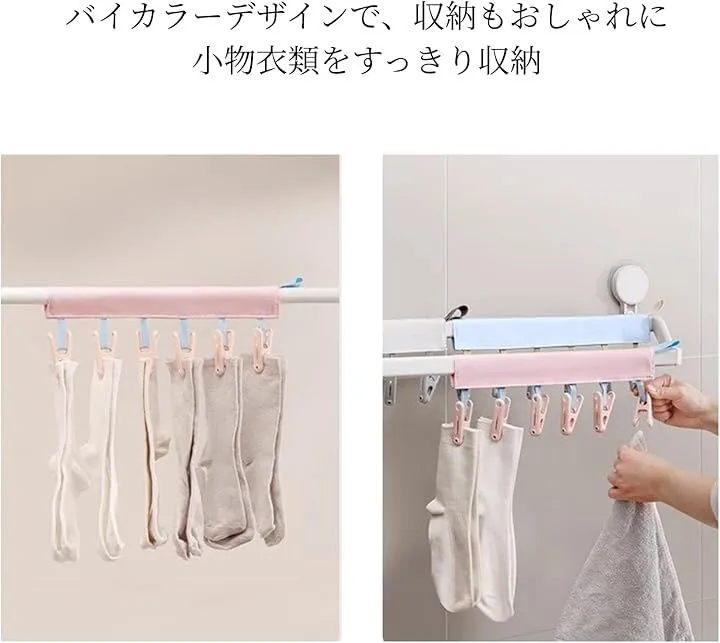 「たくさん干せる」6つの洗濯ばさみが付いているので、ハンカチや靴下、マスクや帽子など小物をたっぷり干すことができます。
