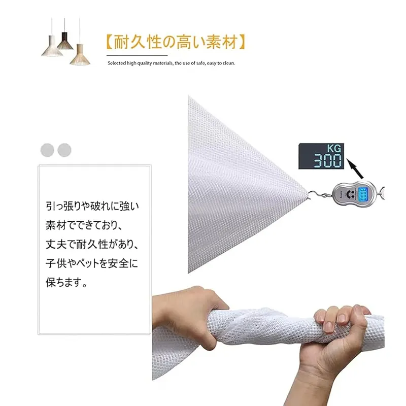 【新品】 階段手すり用 転落防止ネット 安全ネット 網目0.5cm 90*450cm 厚手 階段ネット 落下防止 お子様やペットの階段の転落防止 防護ネット 吹き抜け ベランダ網 猫脱走防止 階段安全対策 ペットゲート ホワイト 製造元:Kanemoti 商品番号:NET-WH45 商品内容:90cm×450cm 色:ホワイト