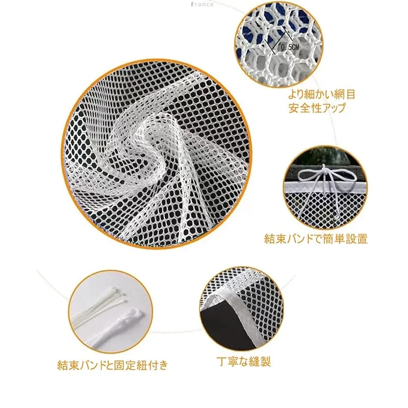 【より安全】網目が小さい(0.5cm)ため、お子様やペットの落下を防ぐだけでなく、工具やおもちゃなどの小物の落下防止にも使えます。