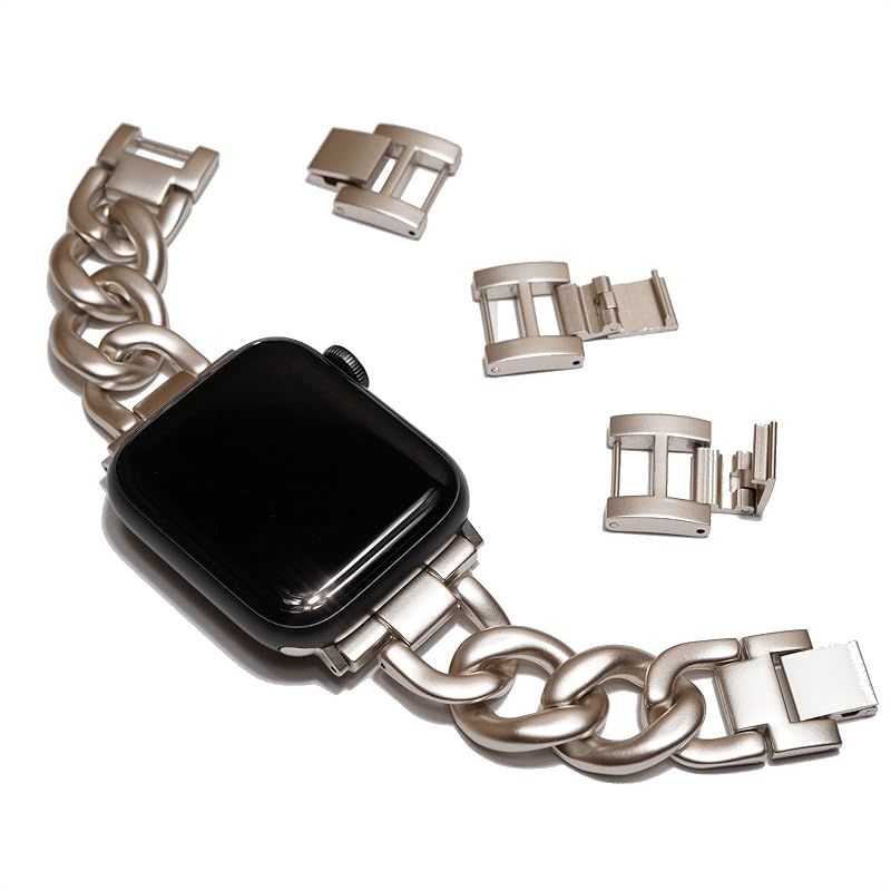 [Royce&Roland] 互換品/代替品 チェーンバンド おしゃれ 時計 バンド (メタル/シルバー) 工具不要/メンズ レディース ギフト プレゼント applewatch アップルウォッチ (44mm 45mm 46mm 49mm, スターライト) 1