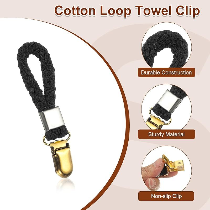 【商品説明】 当社のティータオルクリップは多目的で、屋内外の両方に適しています。キッチン、バスルーム、休暇、RV、ビーチ、キャンプに適しており、これらのクリップはティータオル、ふきん、ビーチタオル、ペットタオル、衣類、靴下、手袋、パンツなどを整理して掛けるのに適しています。仕様:カラー:黒;素材:ポリエステル、ステンレススチール;サイズ:110 x 23 x 10mm / 4.33 x 0.91 x 0.39インチ(長さ×幅×高さ);梱包リスト:ティータオルクリップ5個利点:鉄と織られた綿のロープから作られた当社のタオルクリップは強く、丈夫で軽量かつ頑丈です。歯付きの滑り止めクリップには、テキスタイルが落ちないようにしっかりと保持する大きな金属クリップが特徴です。さらに、各クリップには、タオルや生地への損傷を防ぐためのプラスチックブ ラケットが内部に装備されています。取扱説明:当社のティータオルホルダーを使用するのは非常に簡単です。ホルダーの最も外側の鉄製部分を優しく開けるだけで、内部の2つのクリップが自動的に開きます。これにより、タオルを簡単かつしっかりと掛けることができます。注意: 購入前にサイズにご注意ください。