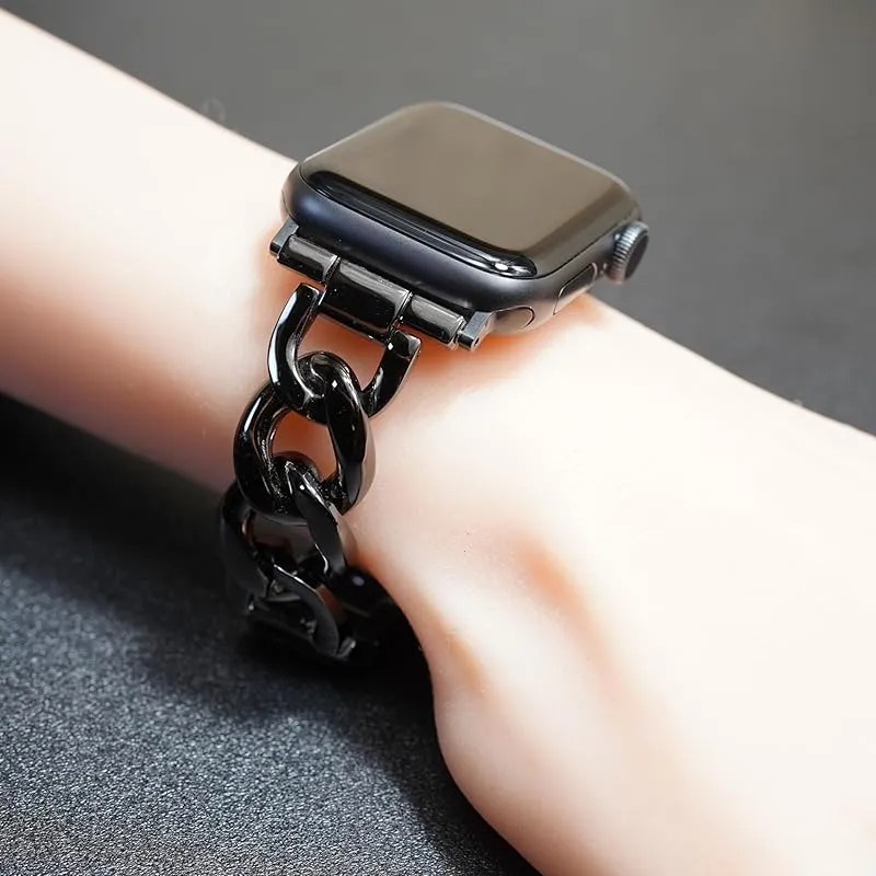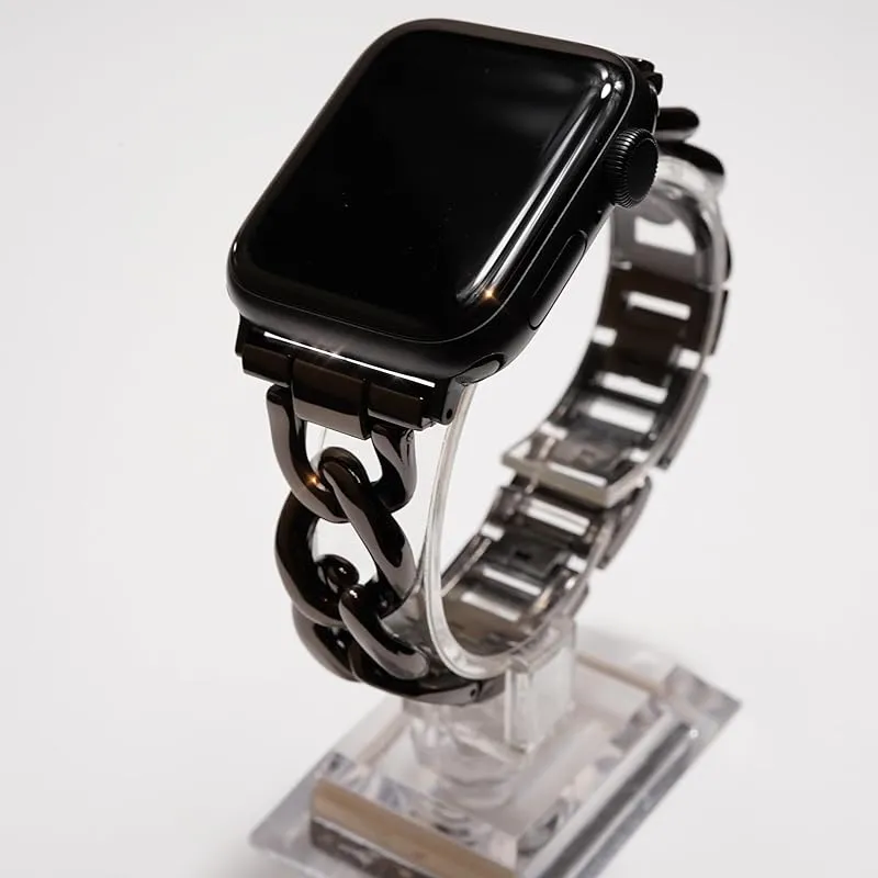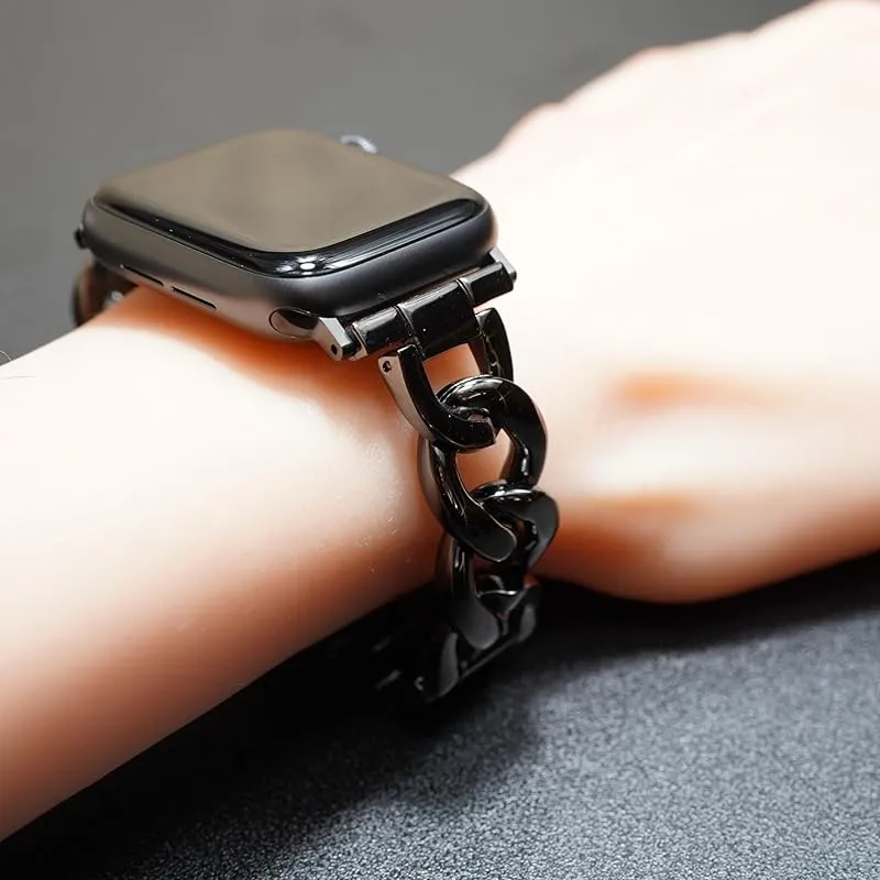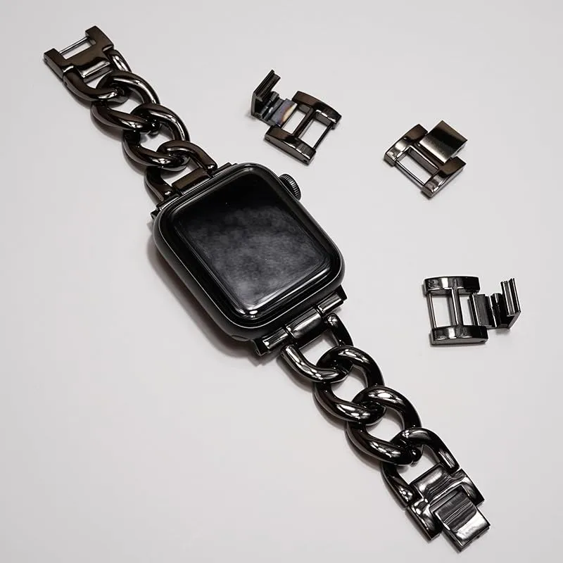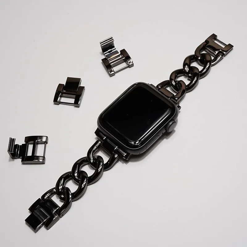 Royce&Roland 互換品/代替品 チェーンバンド おしゃれ 時計 バンド (メタル/シルバー) 工具不要/メンズ レディース ギフト プレゼント Apple Watch アップルウォッチ(44mm 45mm 46mm 49mm, ブラック) 1