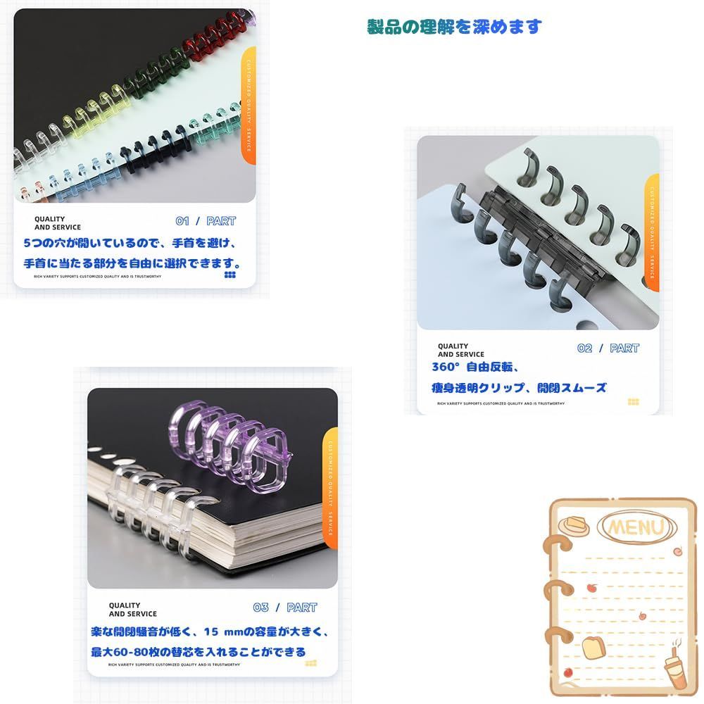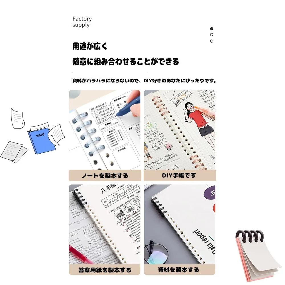 【幅広い用途】DIYの単語帳、学習カード、システム手帳、レシピ、資料、書類、旅行日記、メニューなどさまざまなアイテムの整理に適しています。 1