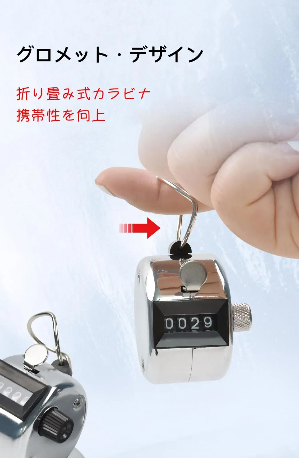 【持ち運びに便利】数取器 手持ち型タイプなので、金属リングに親指を乗せたり、しっかりと握ったりできます。手首に紐を通して掛けることも可能で、持ち運びに非常に便利です。