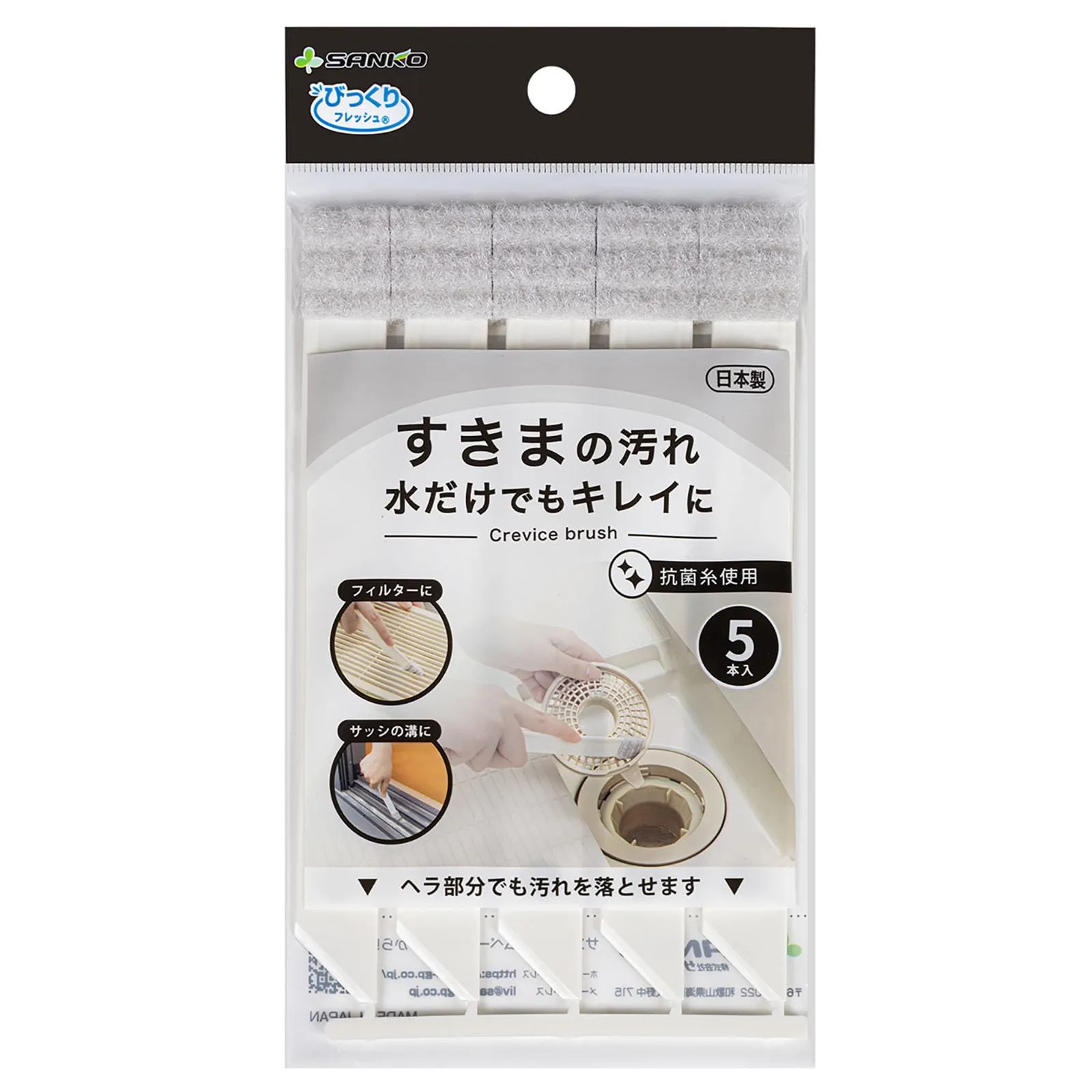 バスやキッチン、手洗い、洗面台、サッシの溝など、通常のブラシでは届かない部分の汚れもしっかり落とす、隙間ブラシ5本入です。