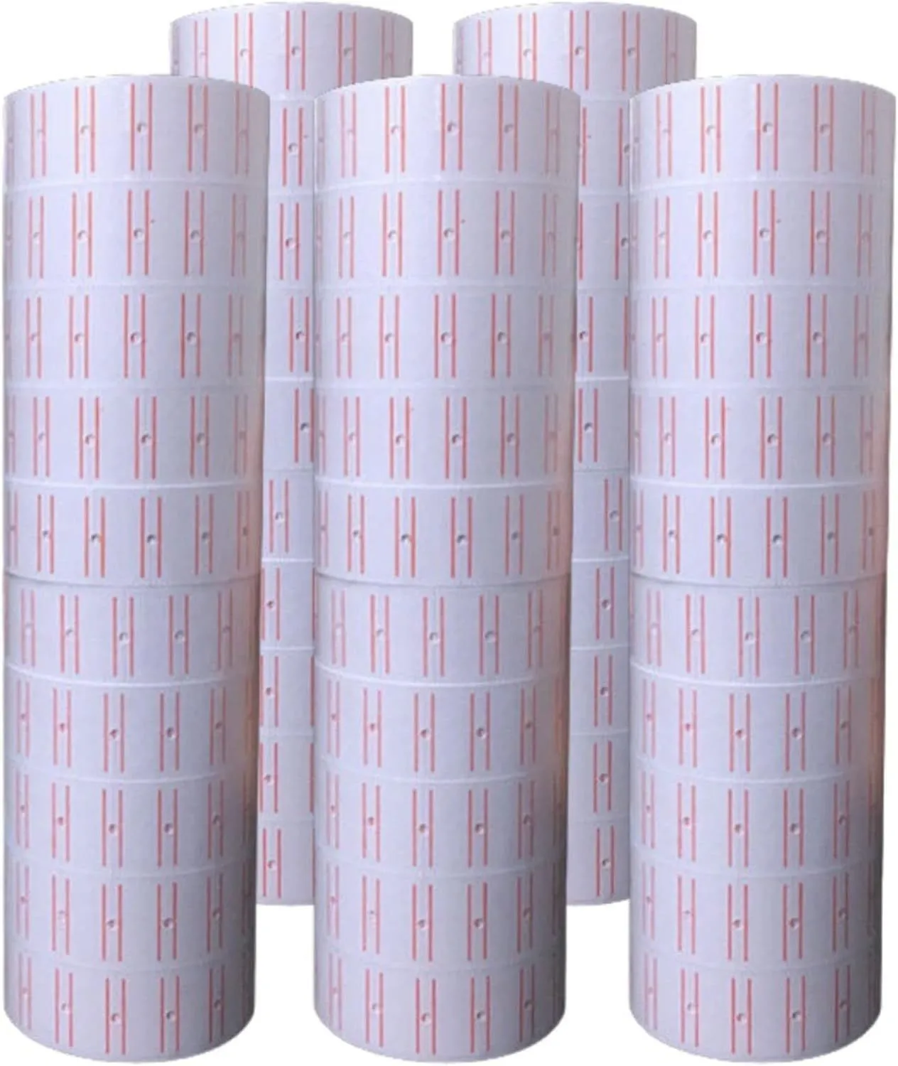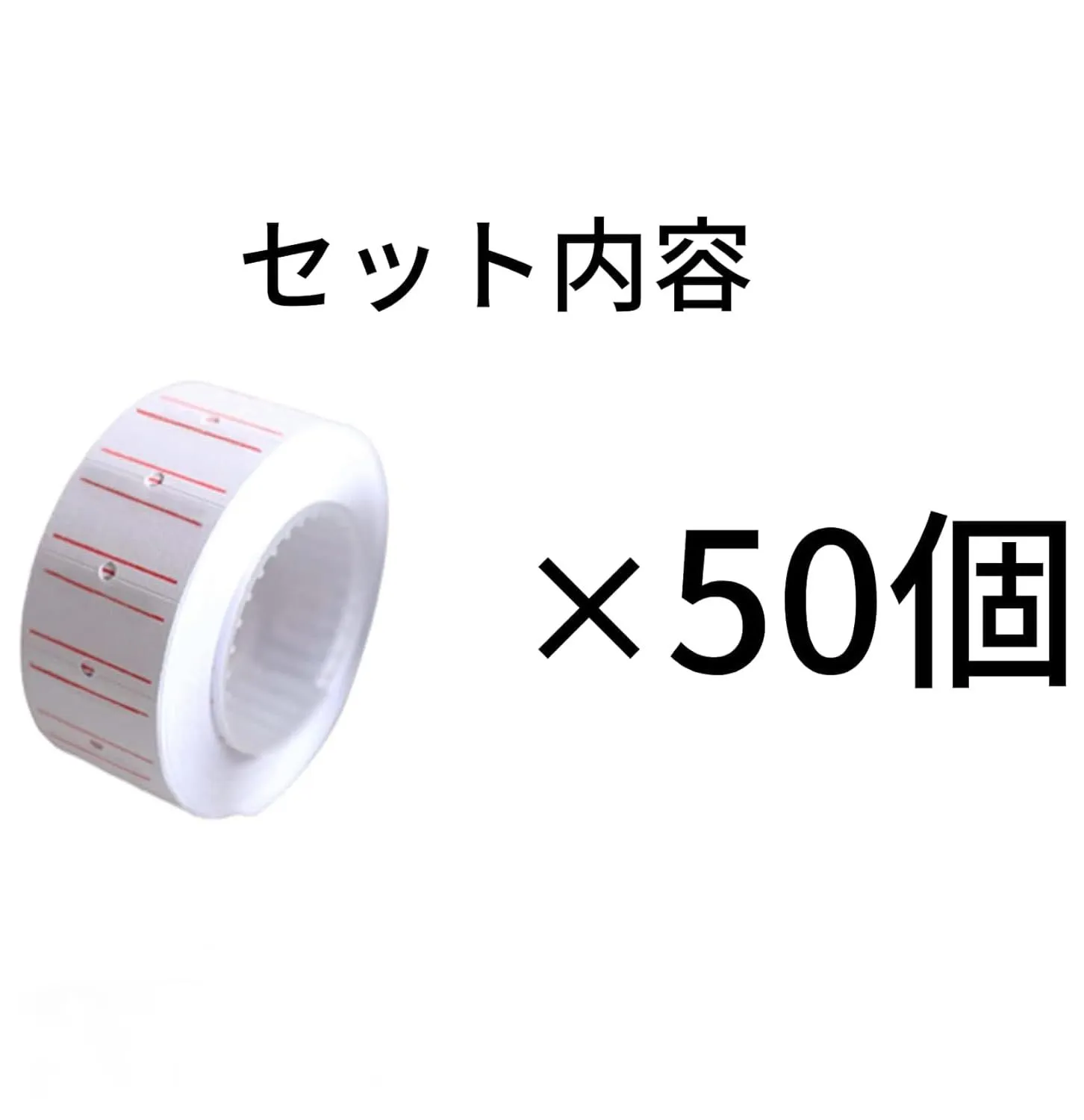 本商品は、ラベルのみとなります。値札ラベル 10巻×5本セット。赤二本線 タイプ