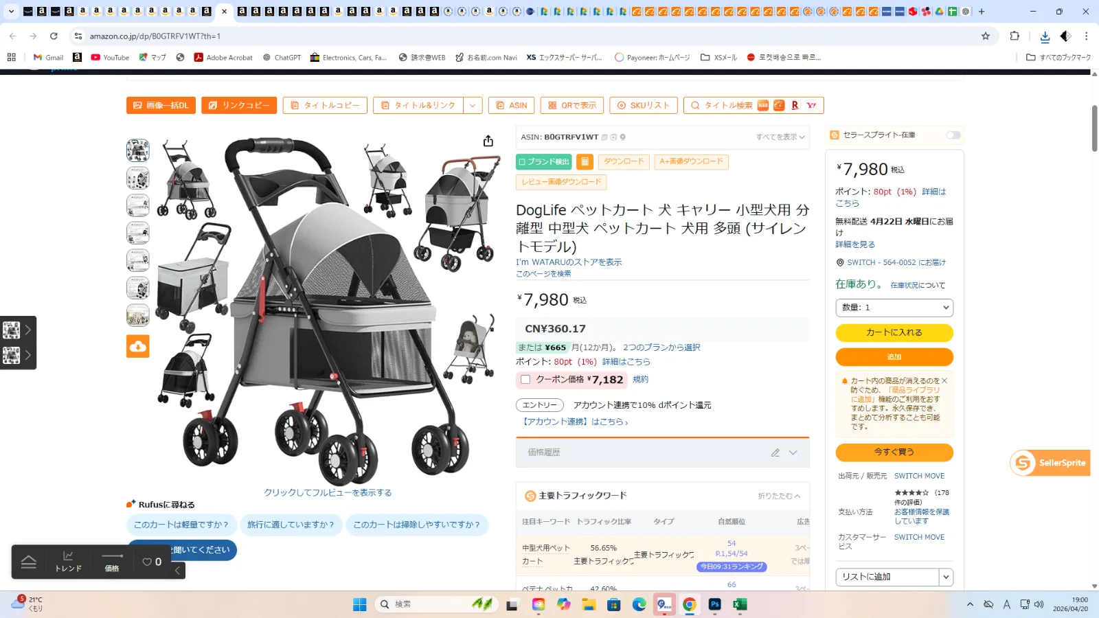 DogLife ペットカート 犬 キャリー 小型犬用 分離型 中型犬 ペットカート 犬用 多頭 (サイレントモデル)