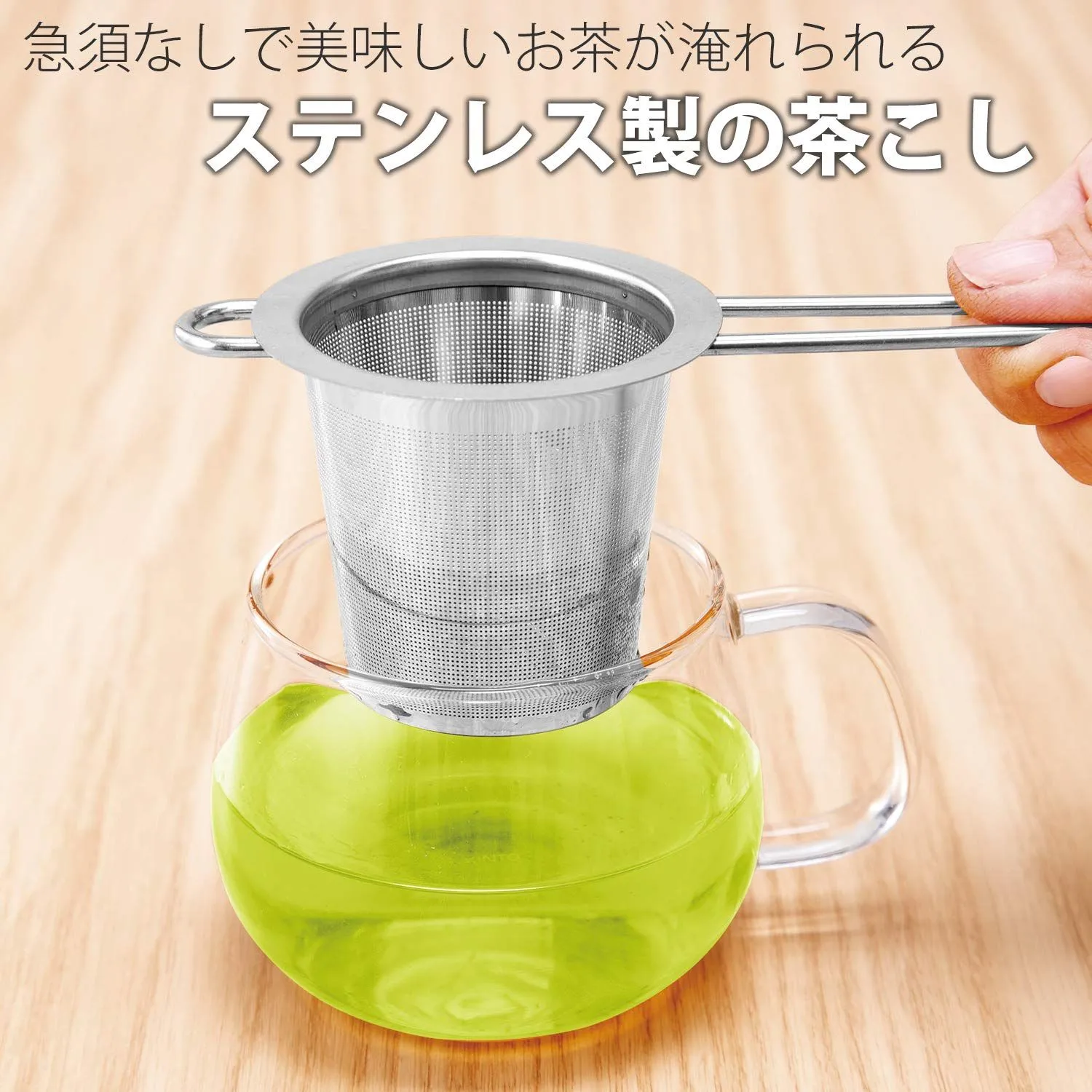 劣化しにくいステンレス製の茶こしはお茶の味も損なわない