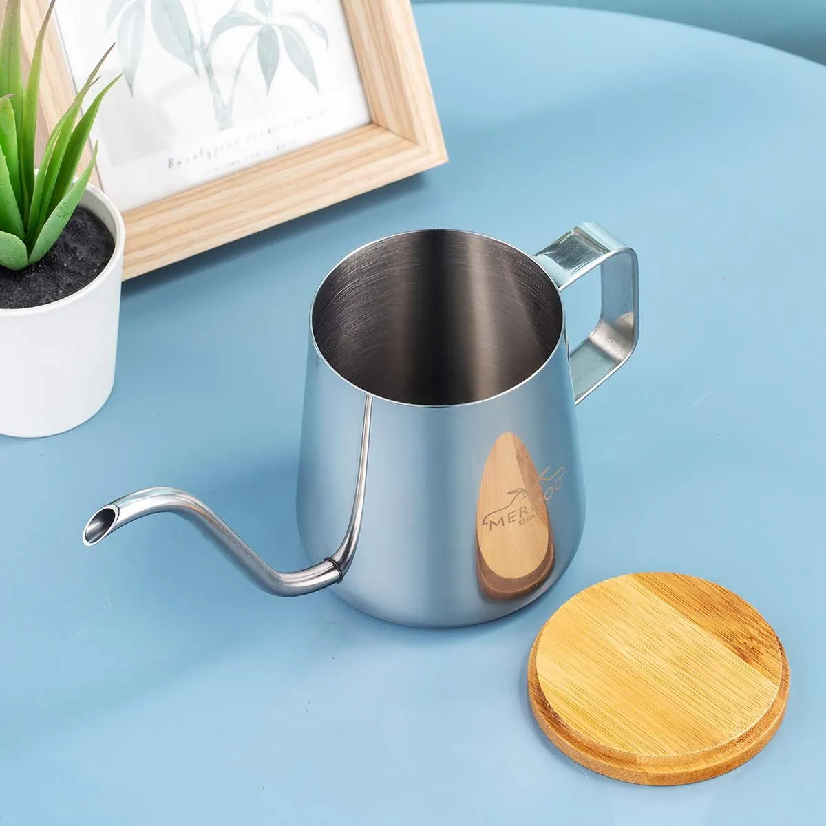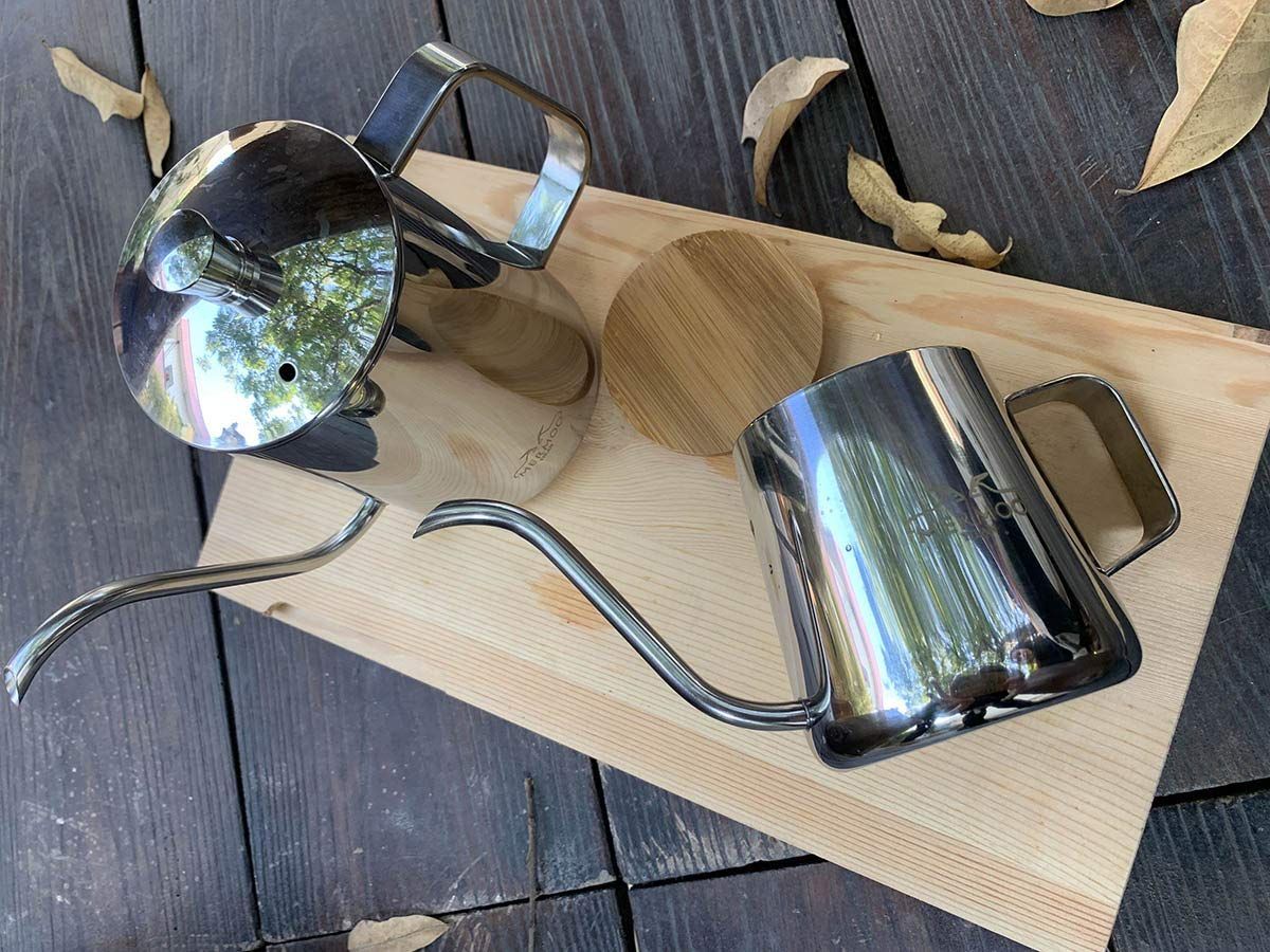【蓋付き1人用 コーヒーポット】竹の蓋が付いたミニドリップポットは、見た目が可愛く、蓋をすることで、コーヒードリップケトルの保温性を高めることができます。使用していない場合、蓋はやかん内の灰落ちを防ぐことができます。