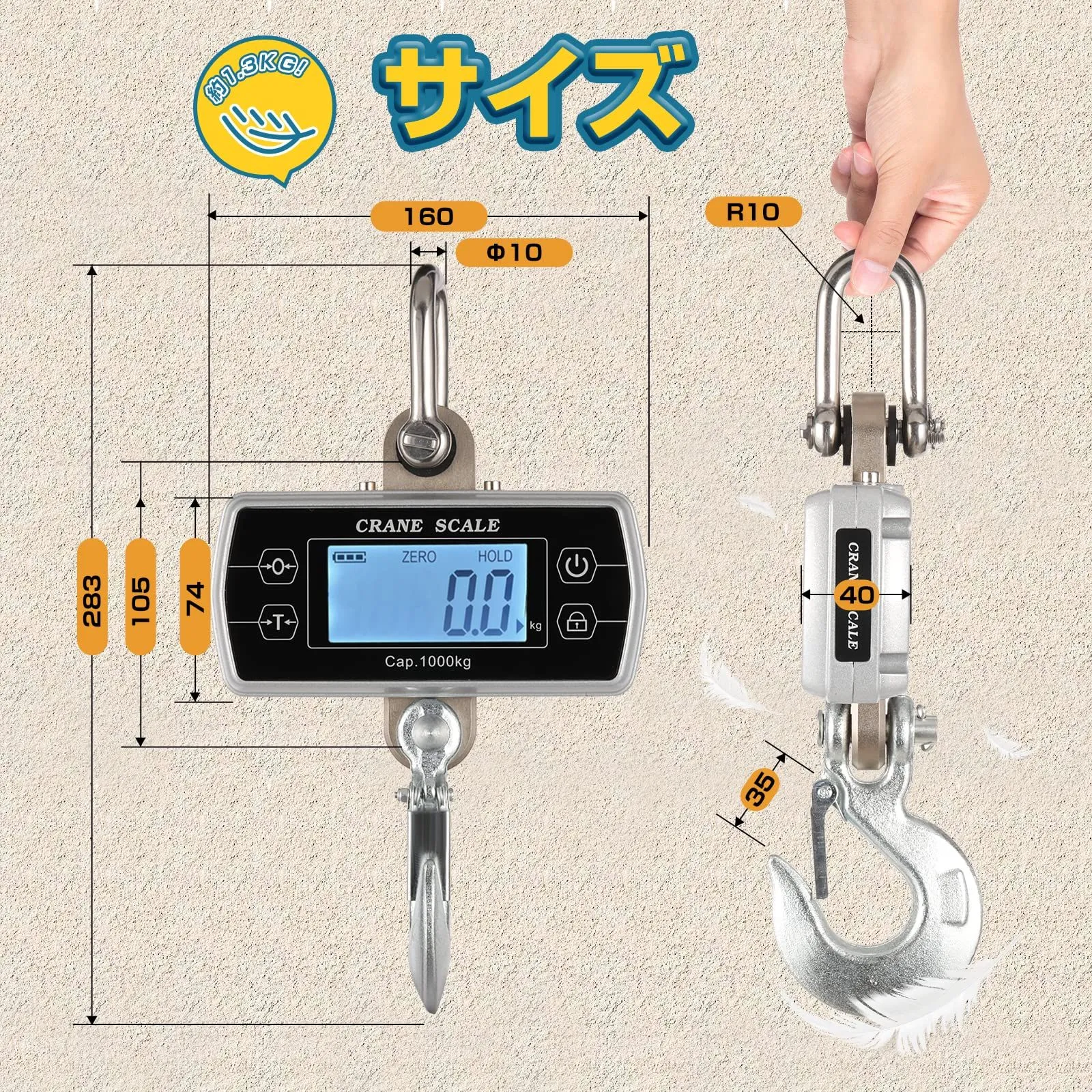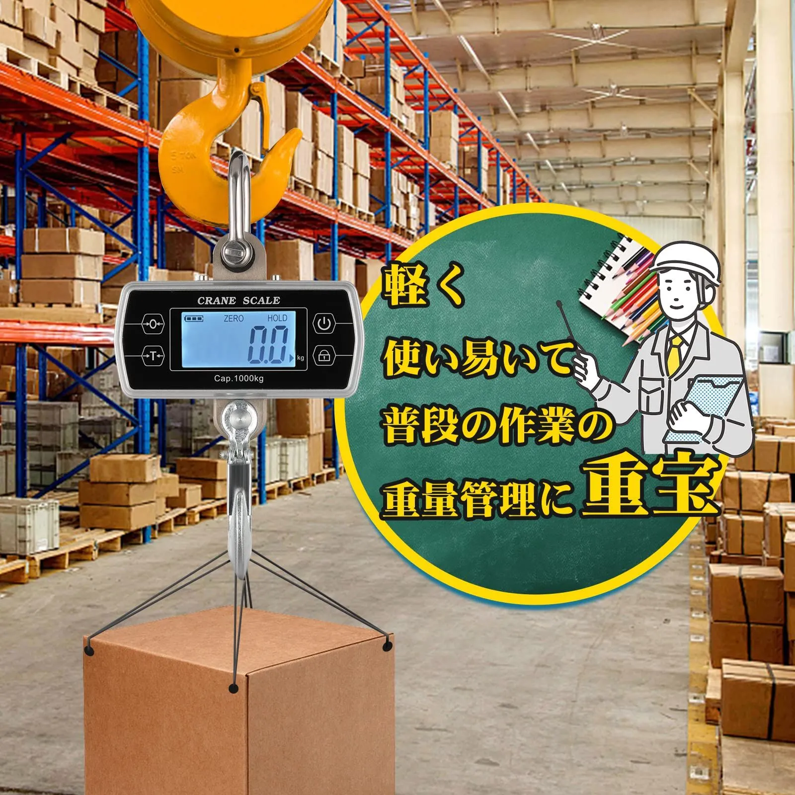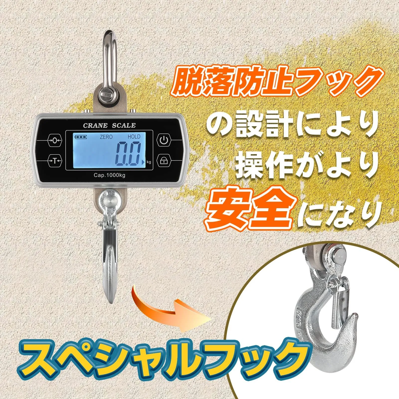 Bonvoisin デジタル吊りはかり クレーンスケール 1000KG 乾電池式(電池別売り) 吊秤 高精度 コンパクト 脱落防止フック 日本語マニュアル付き