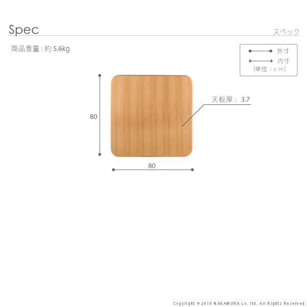 商品名:こたつ 正方形 天板のみ 楢ラウンドこたつ天板-アスター 80x80cm テーブル板 こたつ板 天然木 日本製 リモートワーク 在宅ワーク