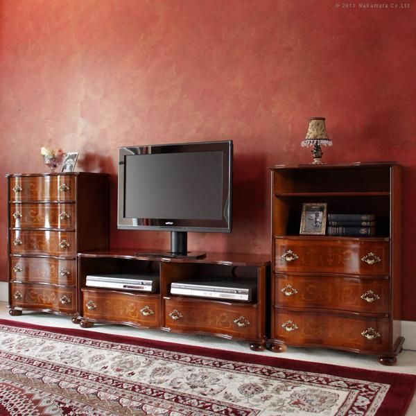 商品名:イタリア 家具 ヴェローナクラシック 丸脚3段オープンチェスト(棚板あり) W58cm 丸脚 輸入家具 アンティーク風 イタリア製 おしゃれ 高級感 木製 在宅