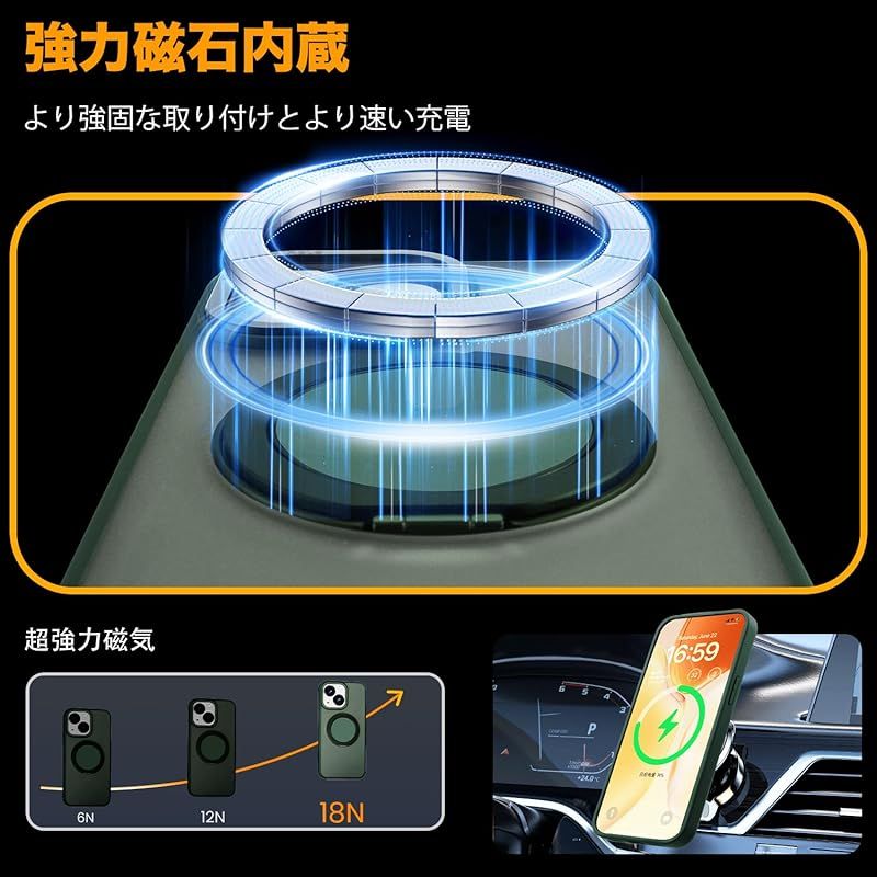 【MagSafe対応】アイフォン14 ケース/アイフォン13 ケースをつけたままマグセーフ機能を快適に使用できます。背面に薄くて強いマグネット内蔵しています、ワイヤレス充電や車載ホルダーやアクセサリとのあらゆる充電に安定で接着ができ、差し込みのいらないより簡単により素早く充電できます
