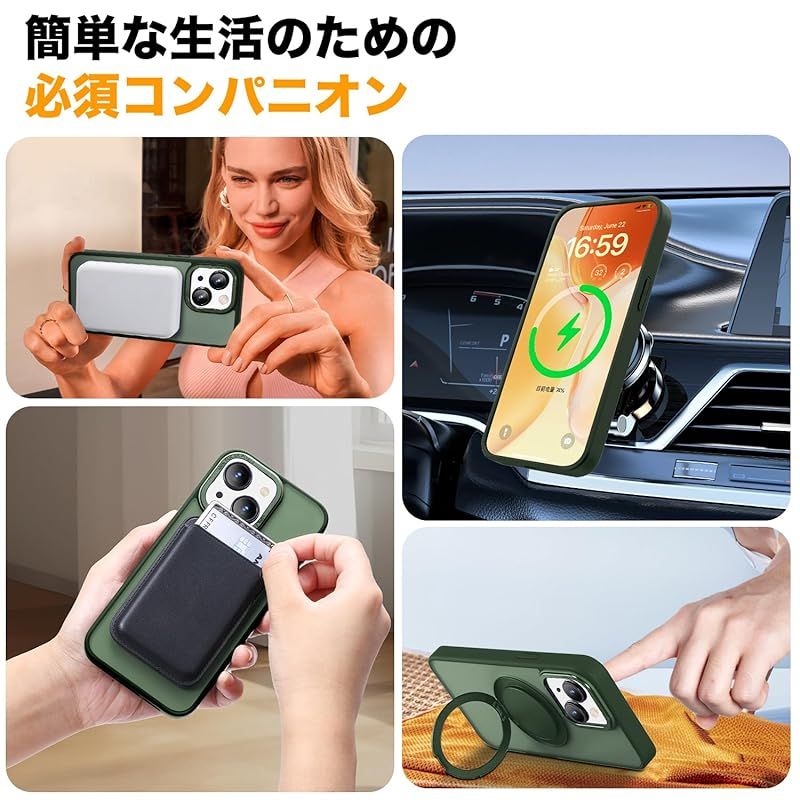 【Magsafe対応・スタンド付き】Mcoifull iPhone14 ケース iPhone13 ケース マグネット搭載 ワイヤレス充電 耐衝撃 マット感 半透明 指紋防止 アジャスタブルスタンド アイフォン14 ケース アイフォン13 ケース ダー 製造元:Mcoifull 商品番号:14-ZJ-CXQ-Shenlv 商品内容:iPhone 14/iPhone 13 色:ダークグリーン