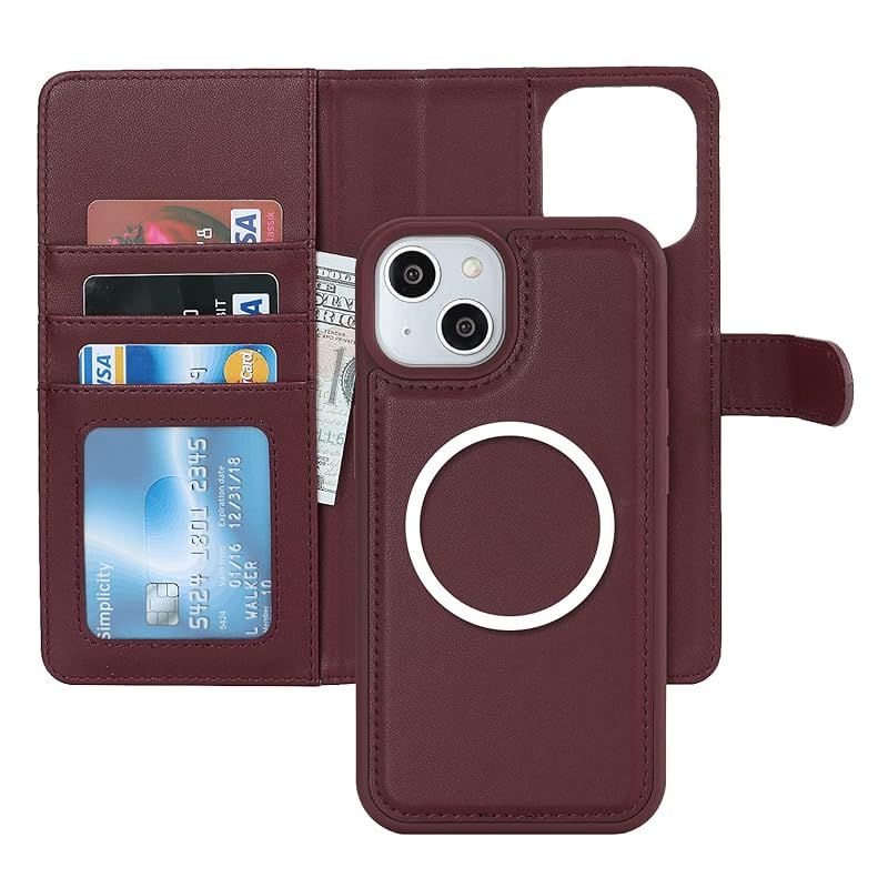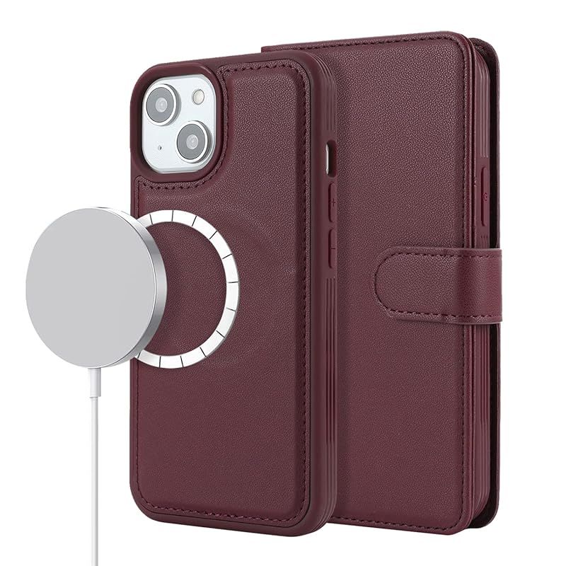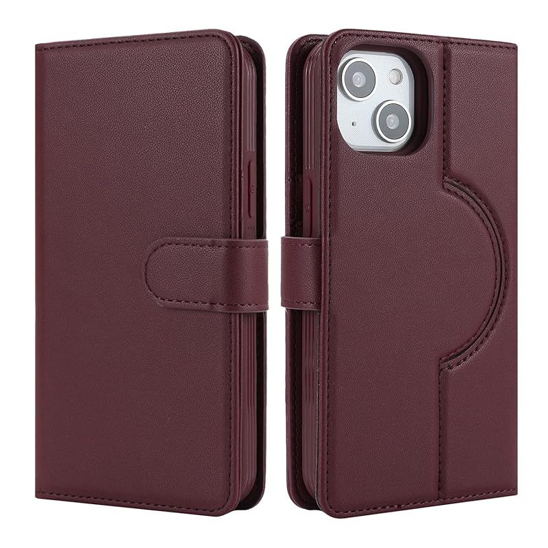 【商品説明】 Pelanty for iPhone 14/13 ケース手帳型 Magsafe対応ワイヤレス充電 for iPhone 13 2in1分離式 携帯カバー PUレザー+TPU 財布型カバー マグネット 取り外し自由 両用 2way 小銭入れ札入れ カード収納 スタンド機能 耐衝撃 滑り防止 全面保護 アイフォン14/13 スマホケース (ワインレッド)