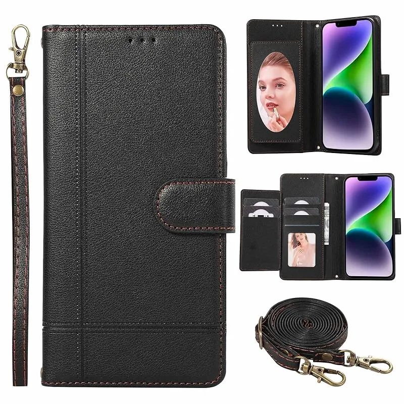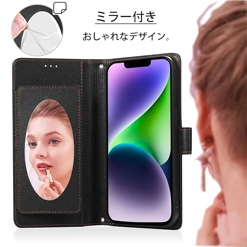 【新品】 MRedoxe for iPhone 13/14 手帳型 ケース アイフォン13 iPhone 14 スマホカバー カード収納 ショルダーストラップ スマホケース 手帳型 iPhone 13/14 財布タイプ カバー ミラー付き女性 おしゃれ (BR 製造元:深チン市紐柏科技有限公司 商品番号:BRL-JZDK13/14-hei 商品内容:IPhone 13/14 色:ブラック
