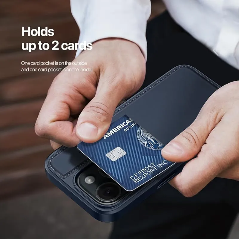 【2024 新登場! 背面カード収納付】iPhone 14 ケース iPhone 13 ケース カード収納 MagSafe対応 ワイヤレス充電対応 上質な手触り アイフォン 14 アイフォン 13 カバー 耐衝撃 全面保護 ICカード収納 横置きスタ 製造元:RS-002 商品番号:RII-002 商品内容:iPhone14/iPhone13兼用 色:ブルー