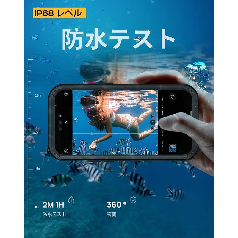 【IP68防水&多保護】防水国際保護等級IP68認定を獲得水没しても内部への水の侵入を完全にガードできます。 雨や、雪、泥や砂などから保護できます!ご注意:ご使用の前に必ず携帯の代わりに一枚の紙をケースに入れて、iPhone 14 Pro防水ケースは最大水深2mで30分間の防水試験を行ってください。