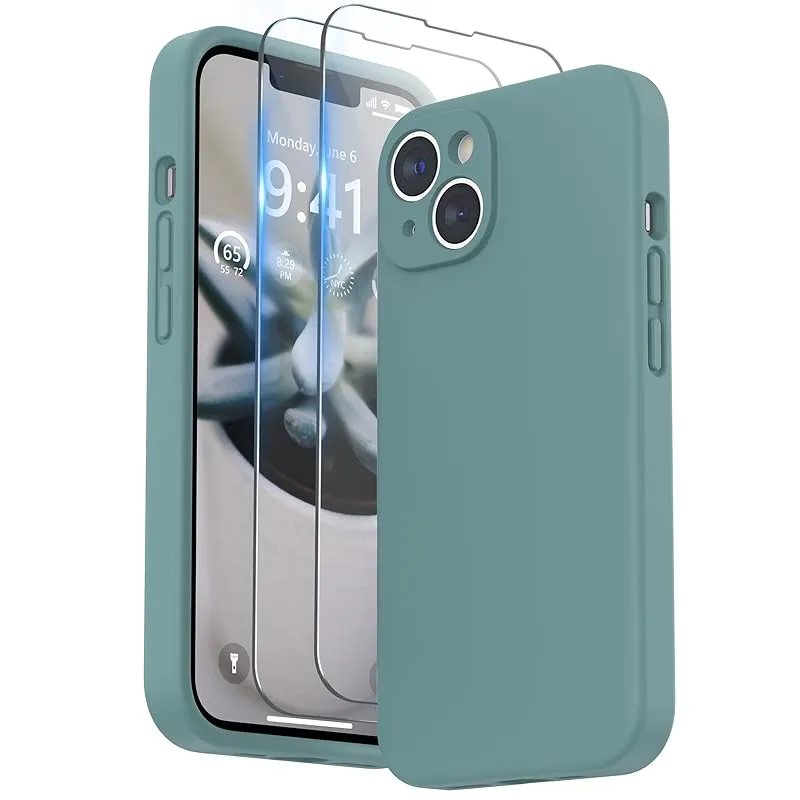 【新品】 SURPHY iPhone14用ケース シリコン,フィルム付き 6.1インチ対応(2022) あいふぉん14用シリコンケース (レンズの全面保護) 耐衝撃 超軽量 指紋防止 全面保護 iPhone14用ソフトカバー (サボテングリーン)