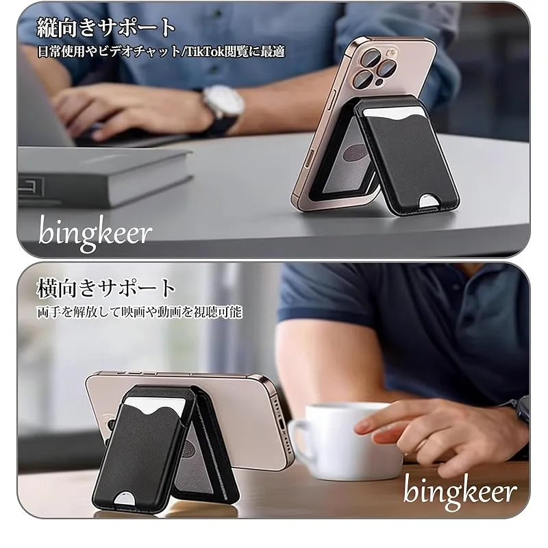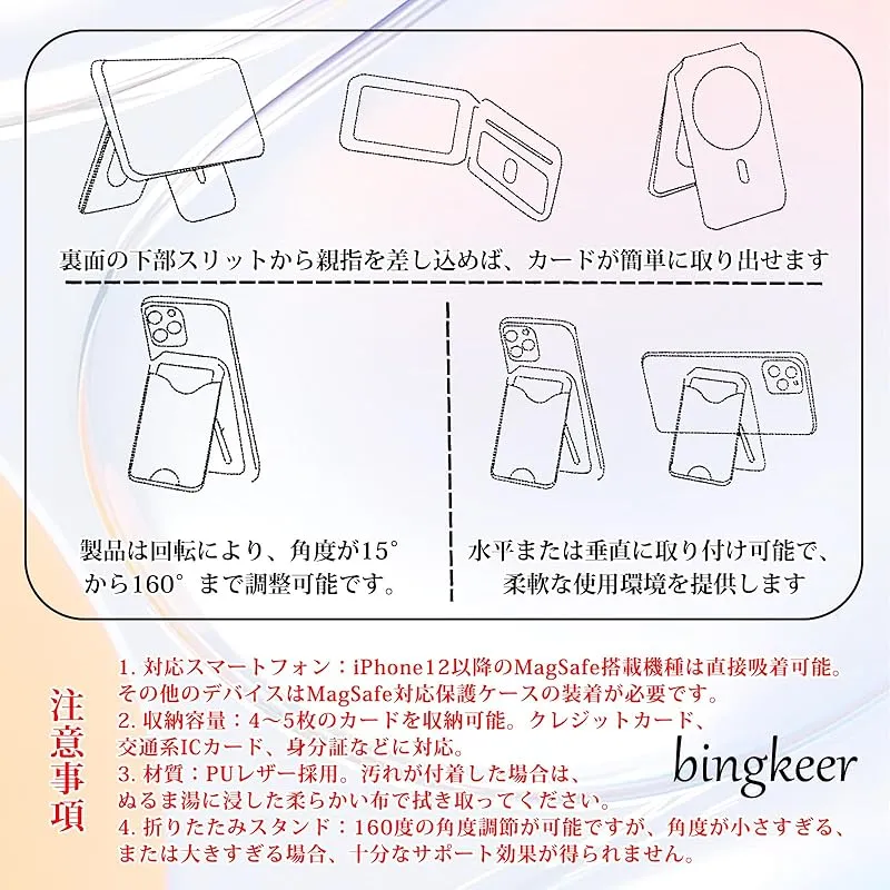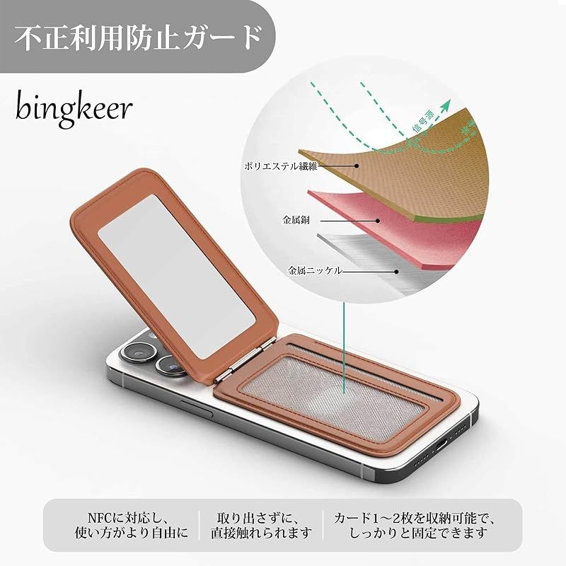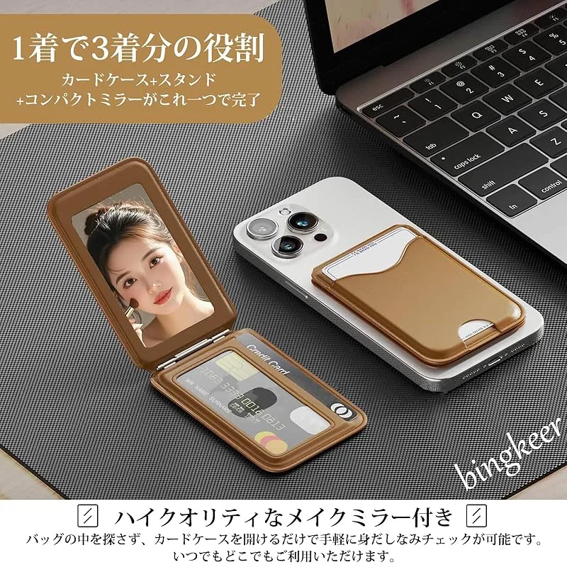 【商品説明】 Bingkeer Mag-Safe 対応 3in1 マグネットカードケース スタンド & ミラー付き 多角度調整 薄型 iPhone 17/16/15/14/13/12 シリーズ専用